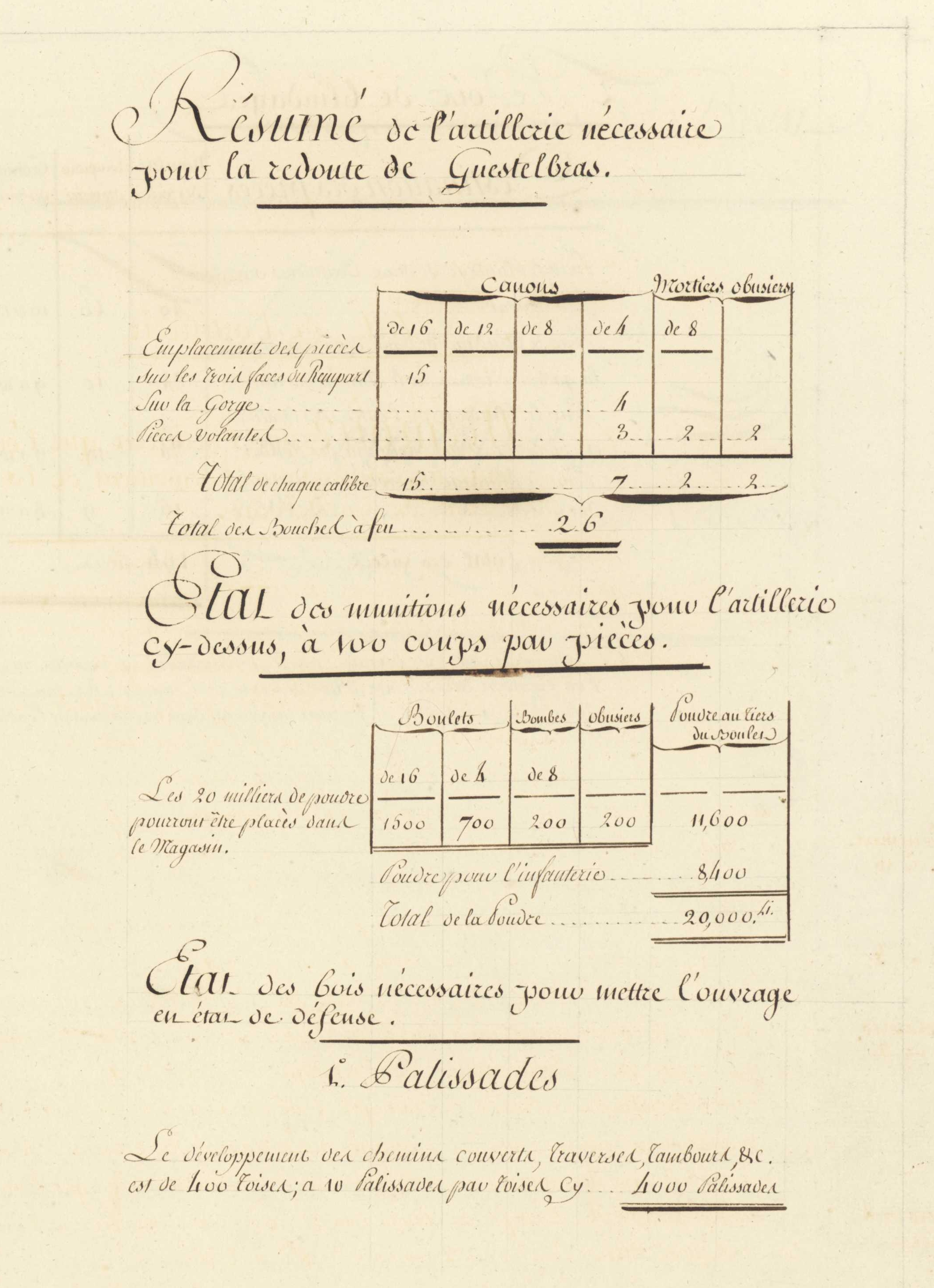 Extrait de l'Atlas des ouvrages extérieurs de Brest dont la construction a été ordonnée par le Règlement du Roi du 31e Xbre 1776 : mémoires, 1781-1784 : mémoire sur l'artillerie de la Redoute de Guestel-Bras (Archives départementales du Finistère, 9Fi1)Immatriculation