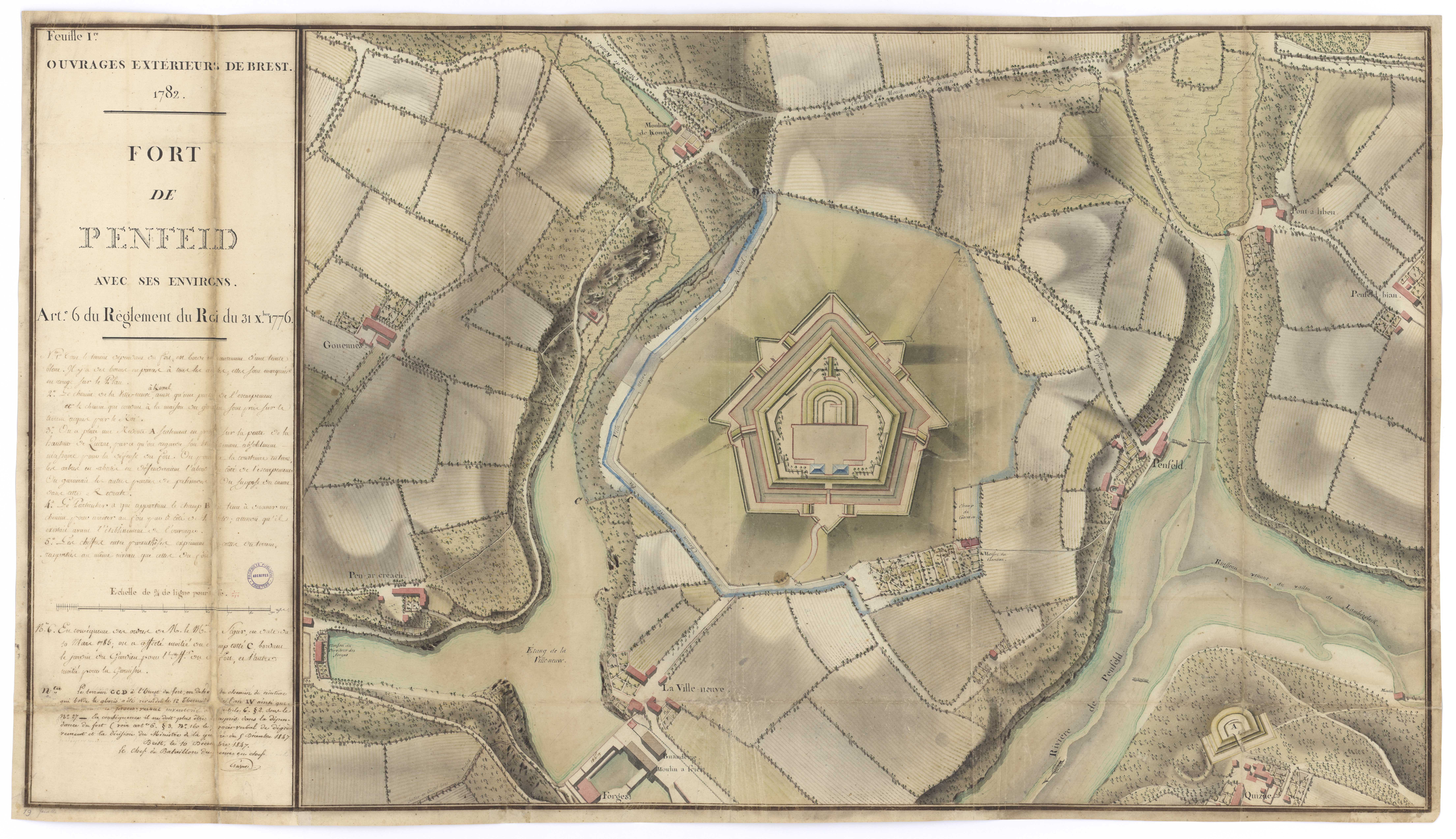 Plan du Fort de Keranroux avec ses environs, 1782 (Archives départementales du Finistère, 9Fi1)Immatriculation