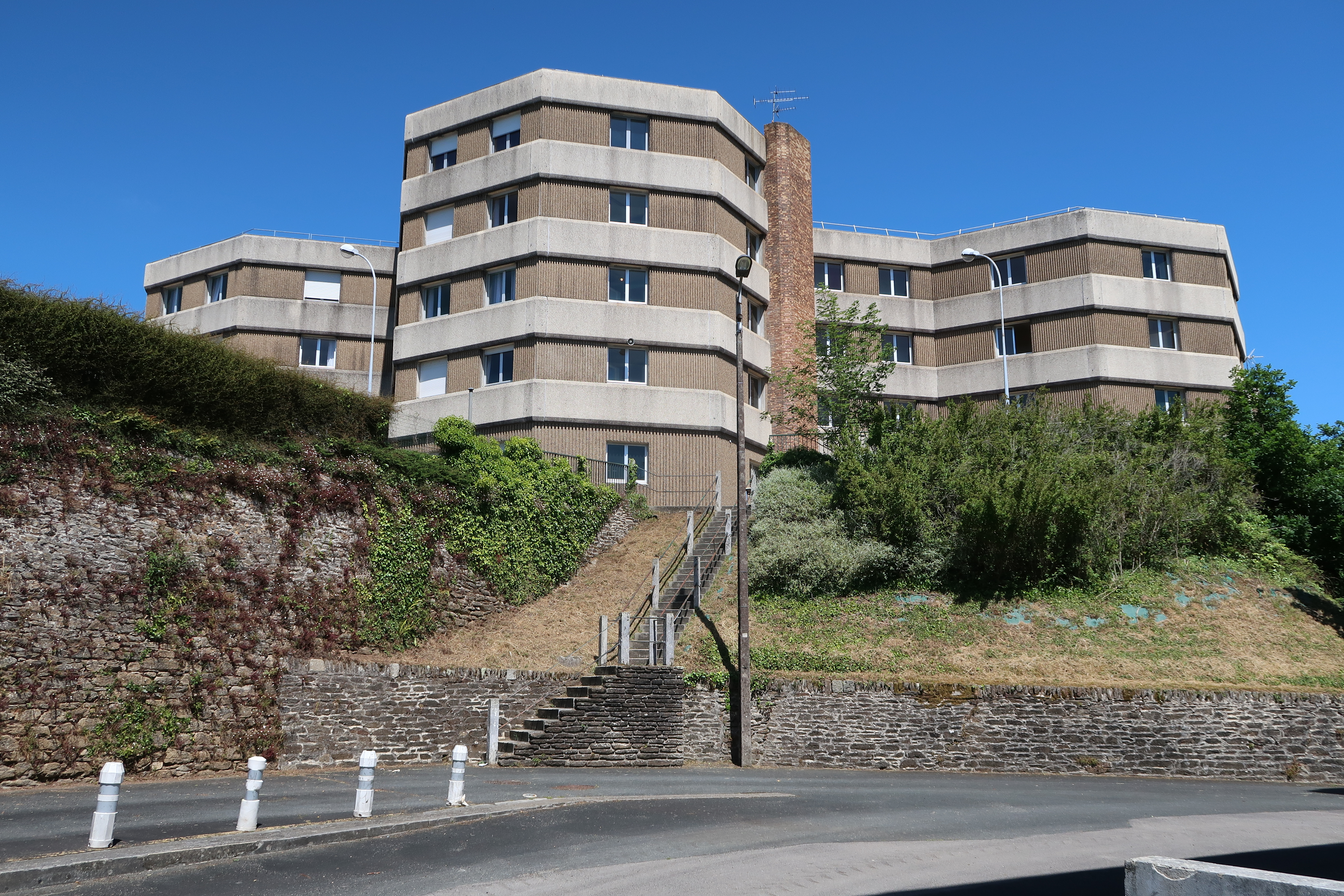 Vue générale des bâtiments situés à l'ouest du site (état en 2022)Immatriculation