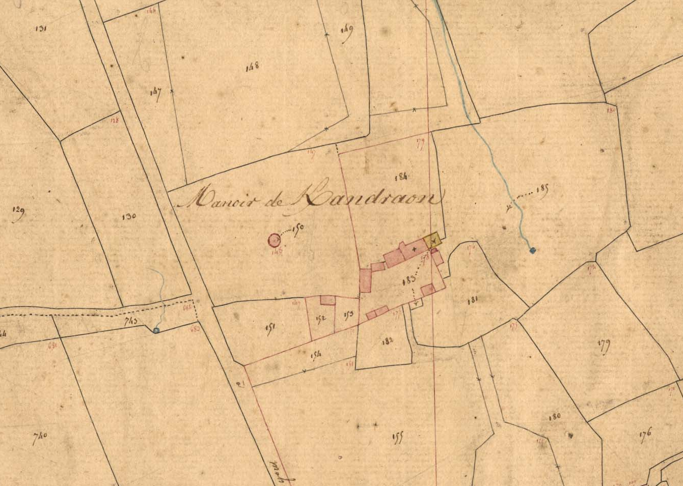 Manoir de Kerandraon, Section B 1 du Bourg du cadastre de la commune de Mahalon, 1836.Immatriculation