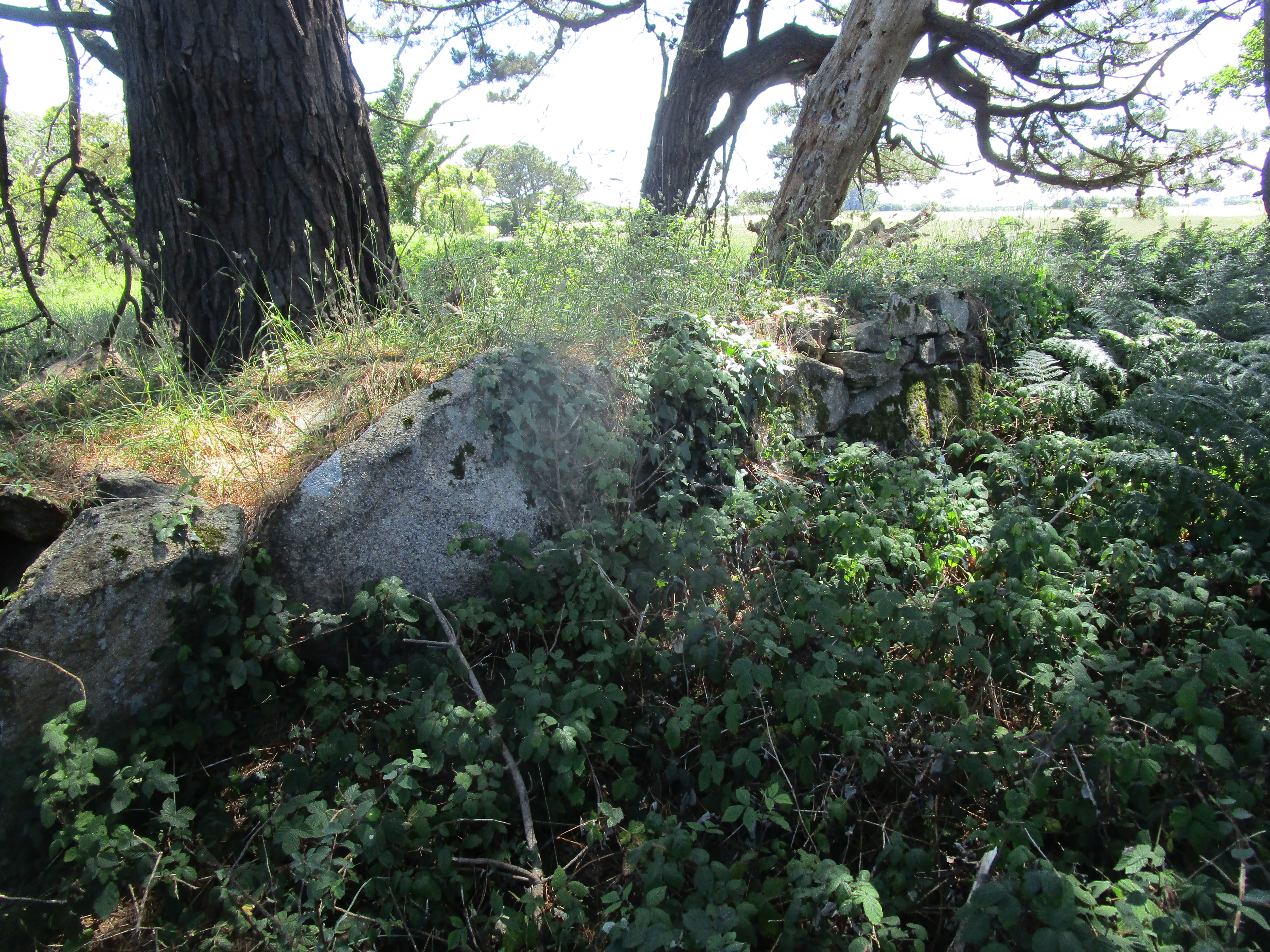Mur 2, vue générale vers l'ouest. Présence de gros blocs de granite.Immatriculation