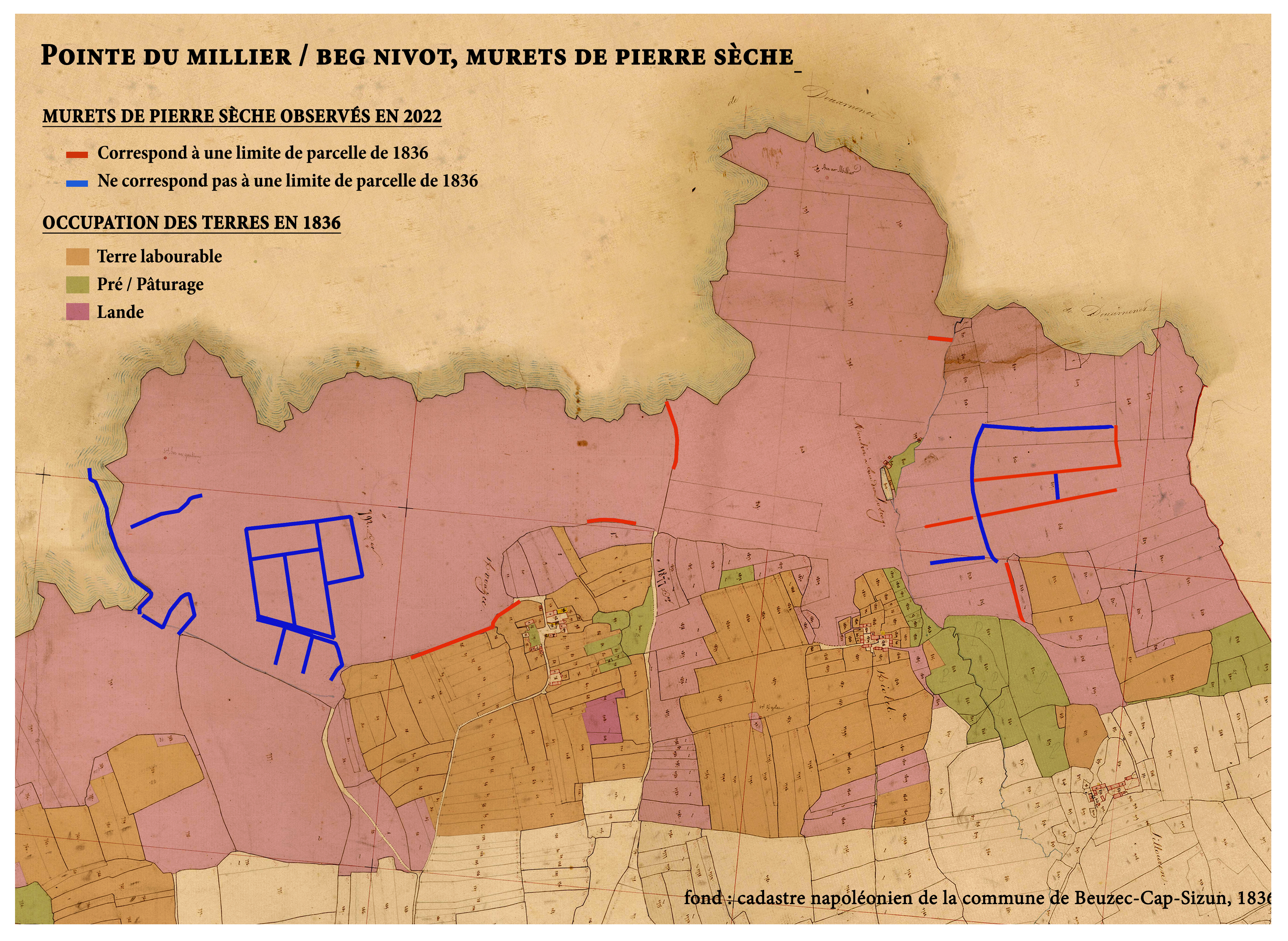 Occupation des sols en 1836. Fond : Cadastre ancien de la commune de Beuzec-Cap-Sizun.Immatriculation