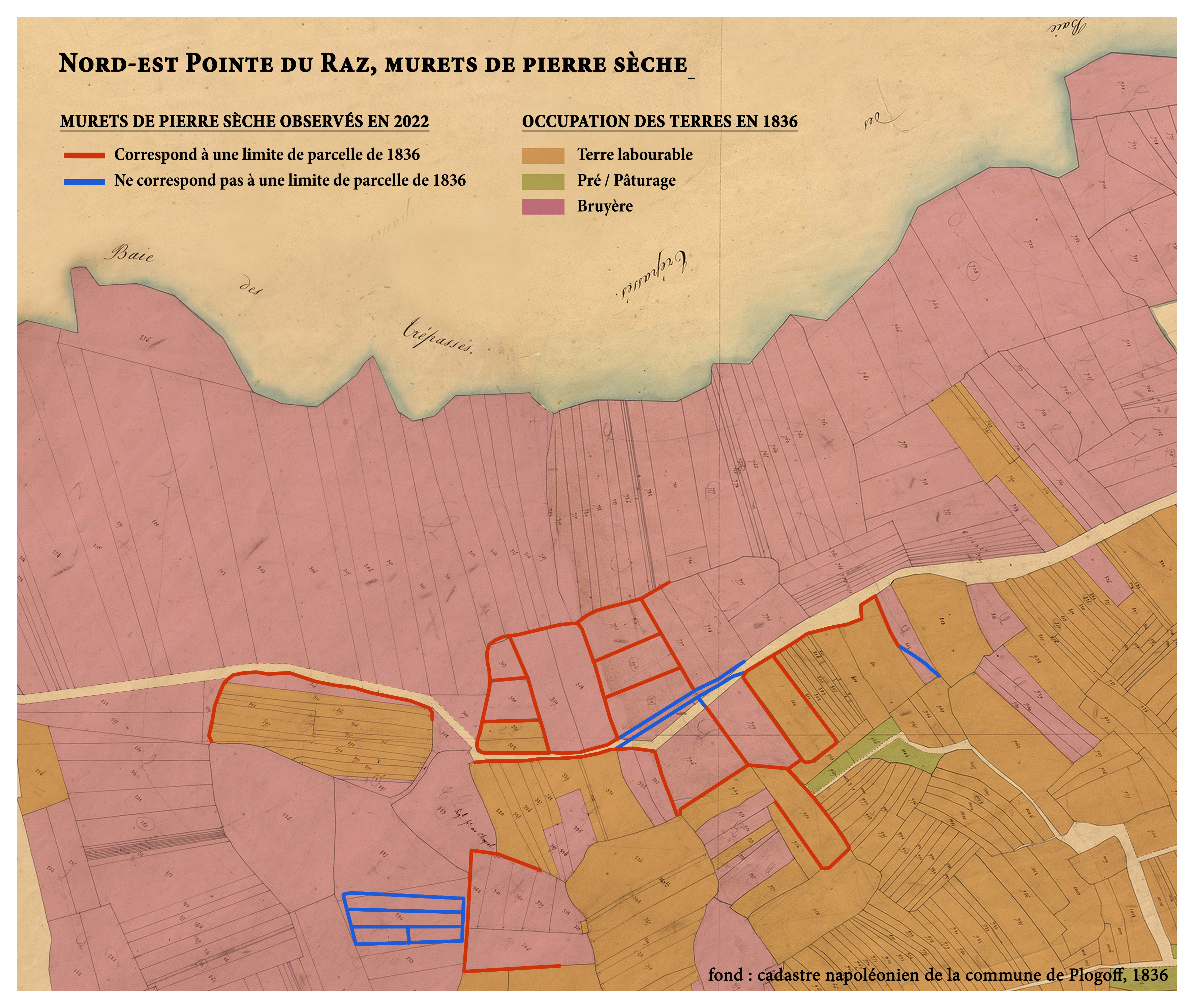 Occupation des sols en 1836. Fond : Cadastre ancien de la commune de Plogoff.Immatriculation
