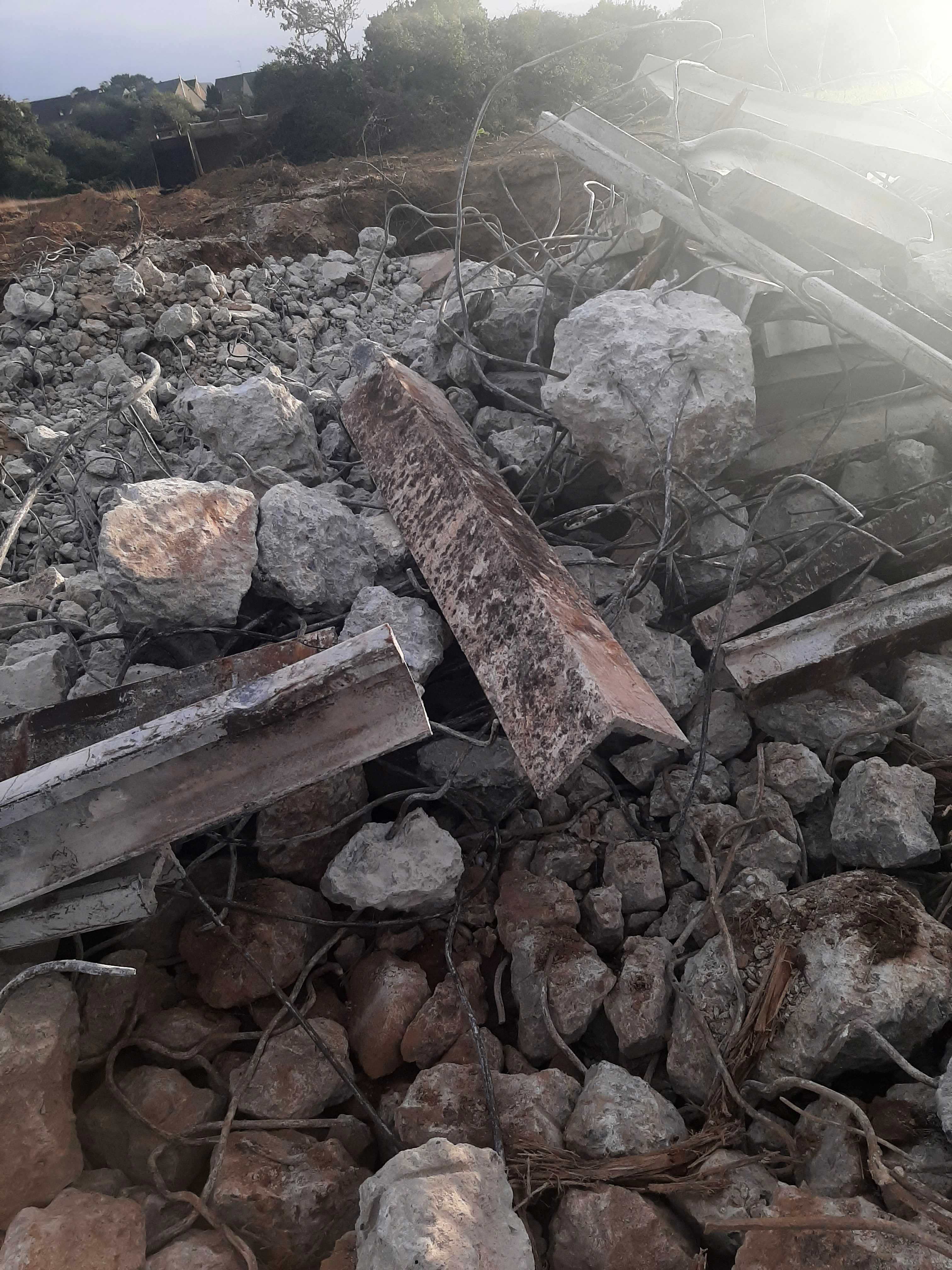 Vue de la déconstruction (26 septembre 2022). Au premier plan : blocs de béton, poutres, fers à béton et rails de chemin de ferImmatriculation