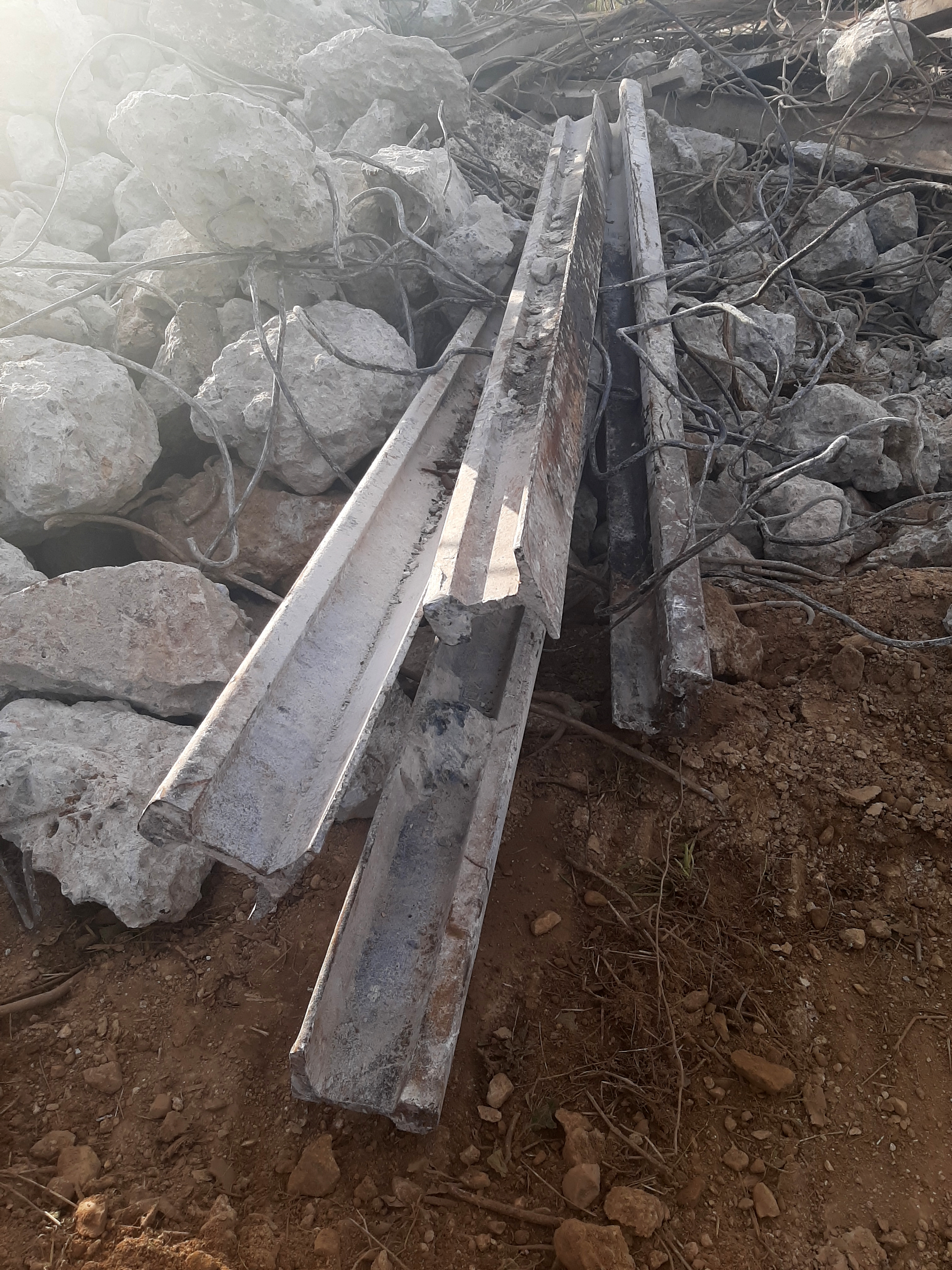 Vue de la déconstruction (26 septembre 2022). Au premier plan : blocs de béton et rails de chemin de ferImmatriculation