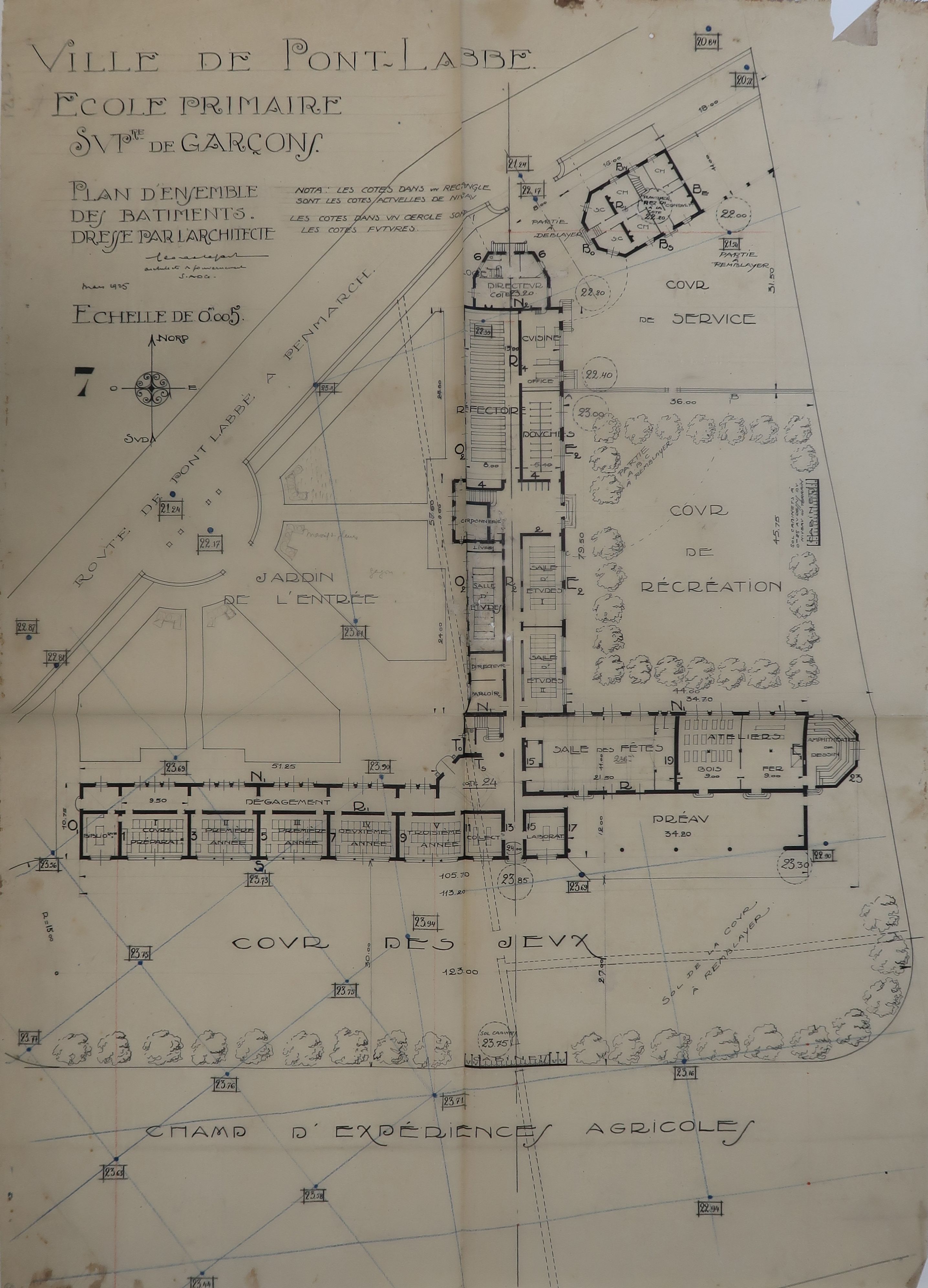 Archives départementales des Côtes-d'Armor : 124J186. Lefort [G-R.], Jeu de plans et dessins de l'école primaire supérieure de Pont-l'Abbé, 1925-1928.