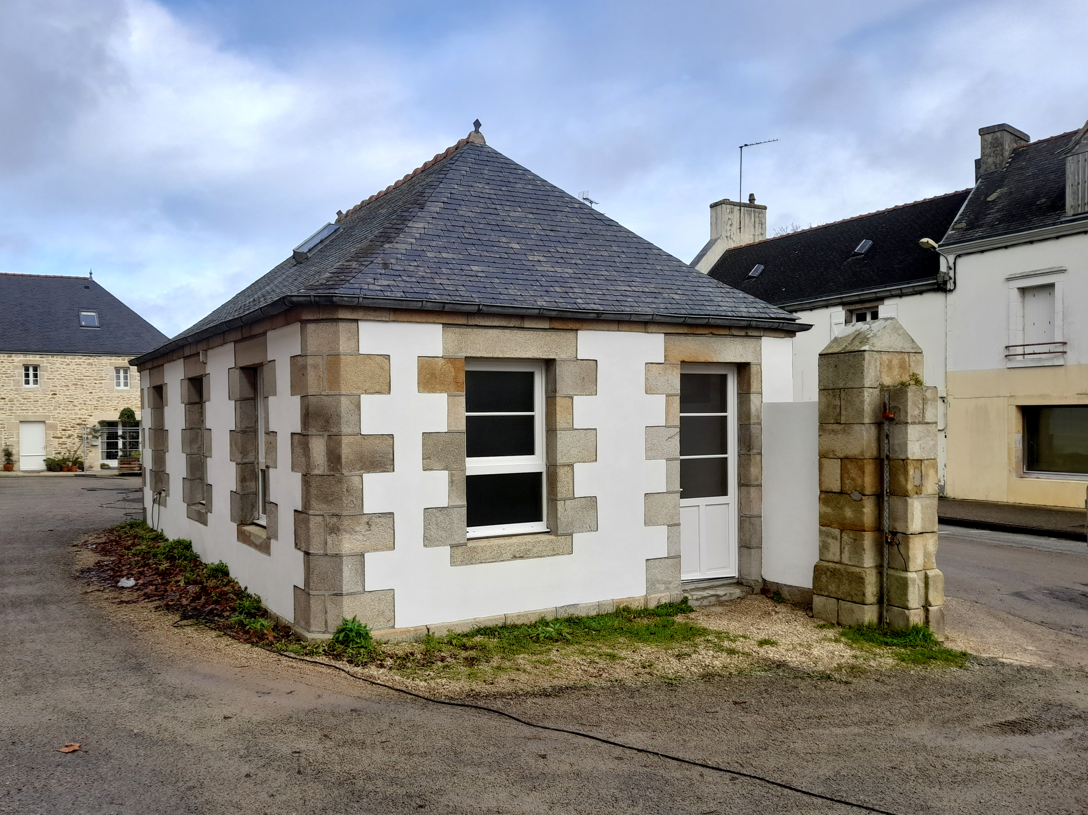 Ancien parloir et pilier nord du portail démoli. (2023)Immatriculation