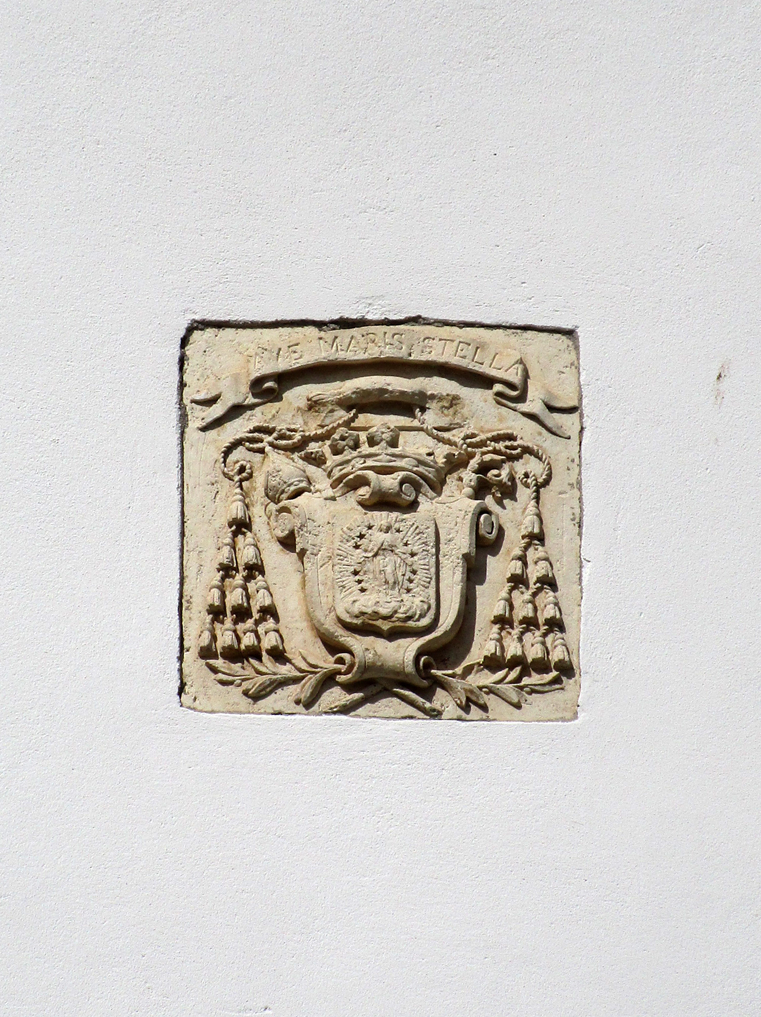 Aile ouest, élévation est. Détail du blason de Mgr René-Nicolas Sergent, évêque de Quimper et de Léon de 1855 à 1871 sculpté sur la façade.Immatriculation