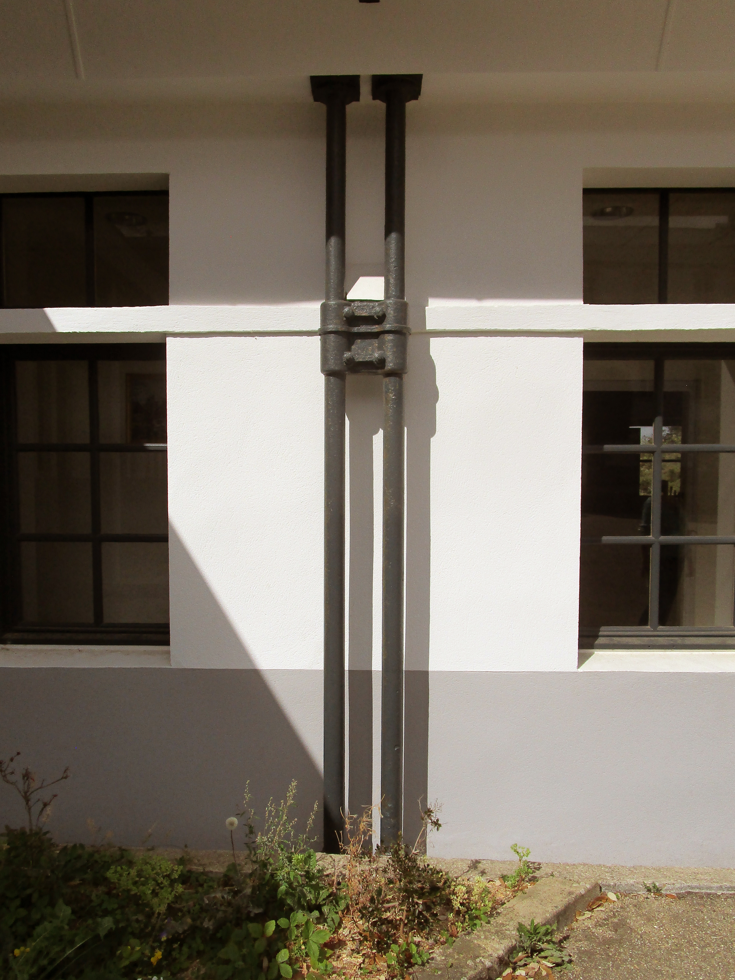 Cour ouest, préau transformé en salle des fêtes. Détail d'un pilier en fer. (2022)Immatriculation