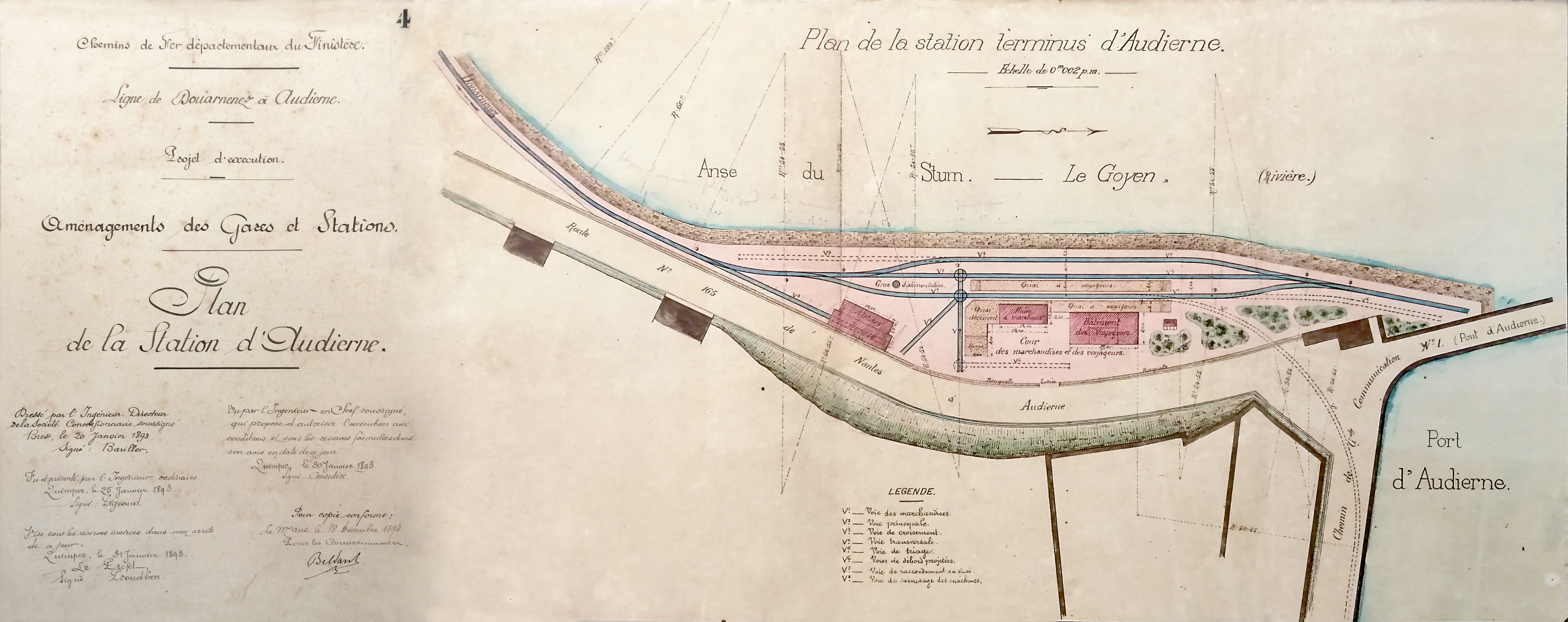 Plan de la station d'Audierne. Reproduction du projet d'execution, 1893.Immatriculation