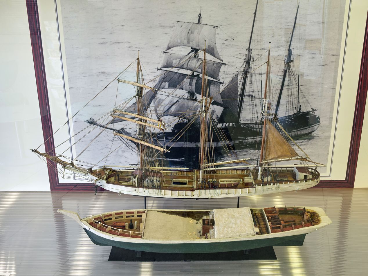Ex-voto, maquette de trois-mâts goélette, dite Charles-Edmond, église paroissiale Saint-Jean-Baptiste (Saint-Jouan-des-Guérets),