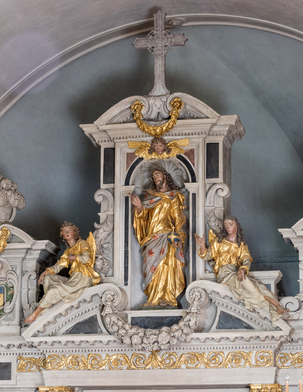 Statues du Christ triomphant encadré de deux anges assisImmatriculation