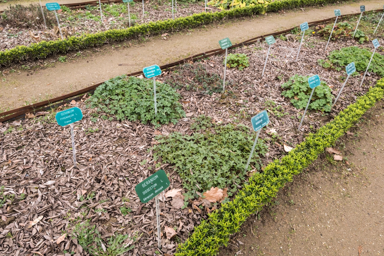 Jardin botanique, plantes parmi les 11 plates-bandes concentriques de 1,50 mètres de large.Immatriculation