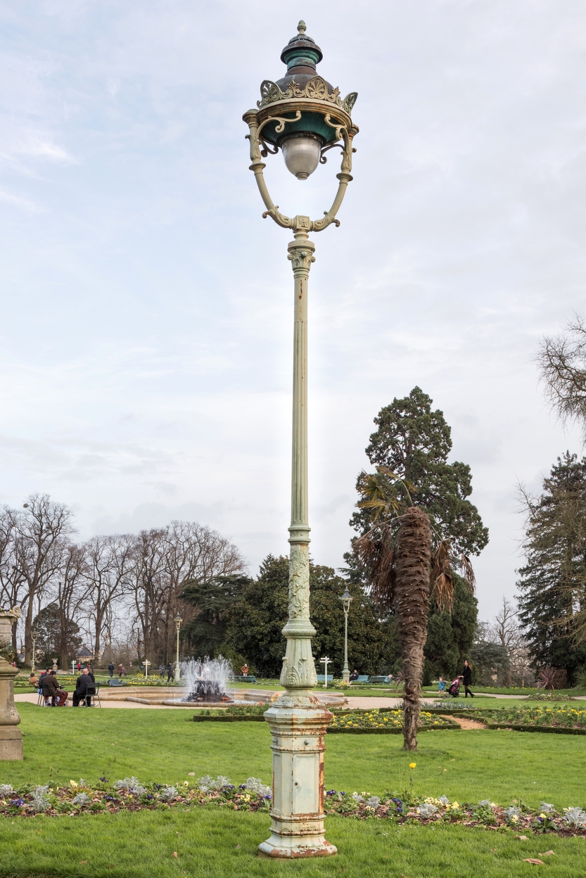 Un des 18 exemplaires de candélabres droits à un feu entourant le jardin à la FrançaiseImmatriculation