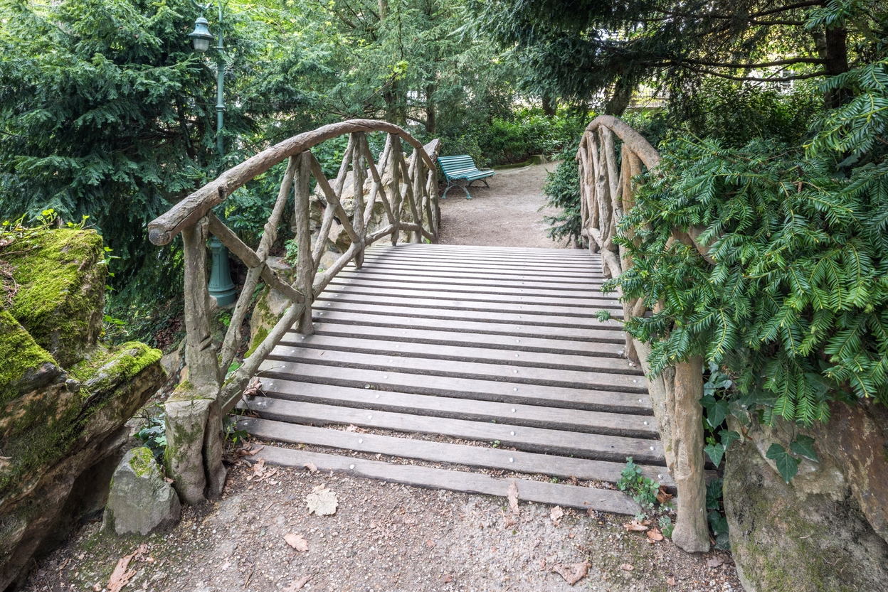 Cascades, ponts de jardin et grotte artificielle, Parc du Thabor (Rennes),