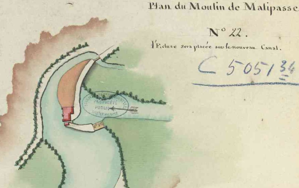 Plan du moulin de Malipasse, 1784. AD 35, C5051(34).