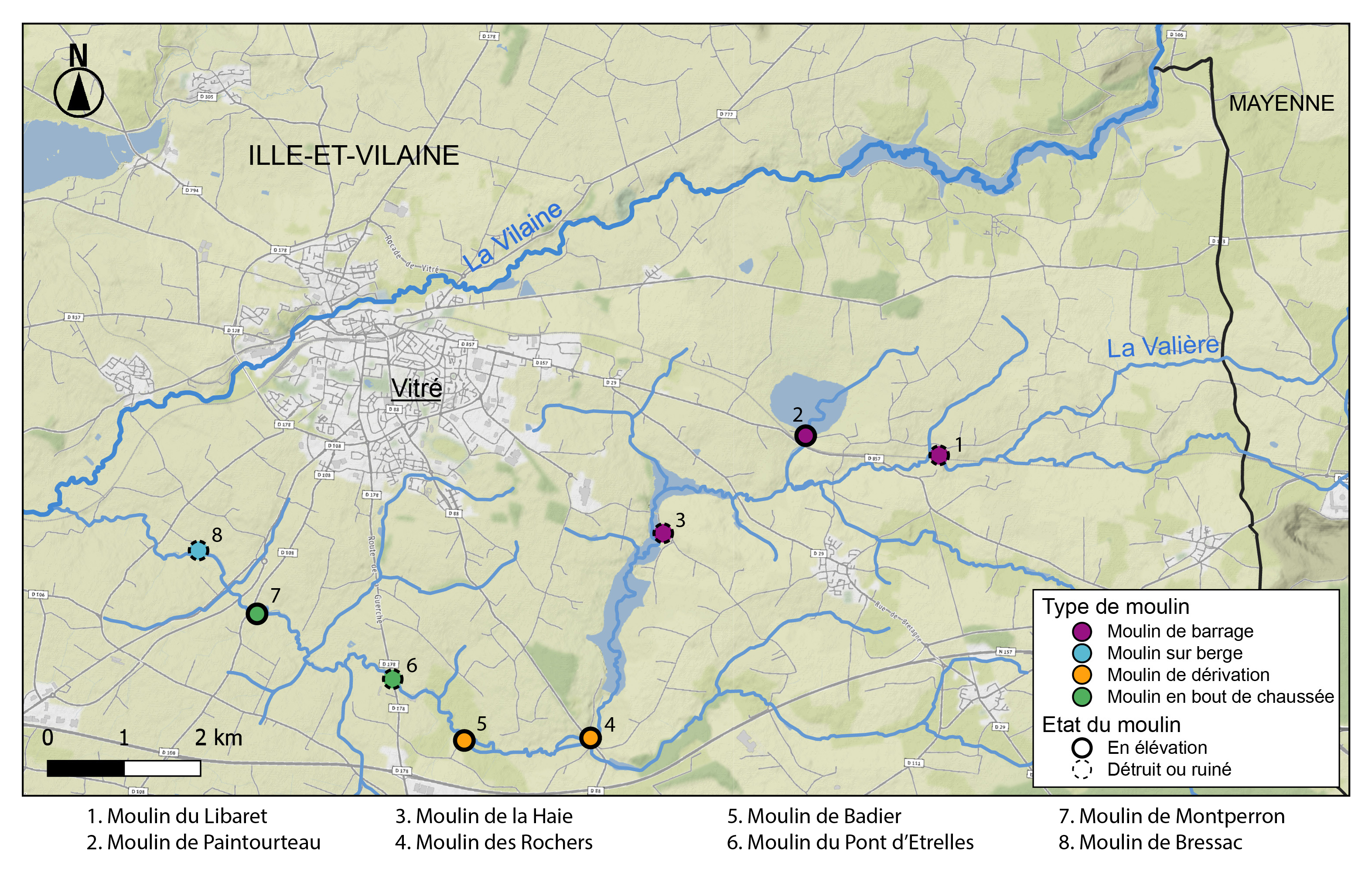Répartition des moulins selon la typologie de leurs infrastructures hydrauliques et leur état de conservation (carte 1)Immatriculation