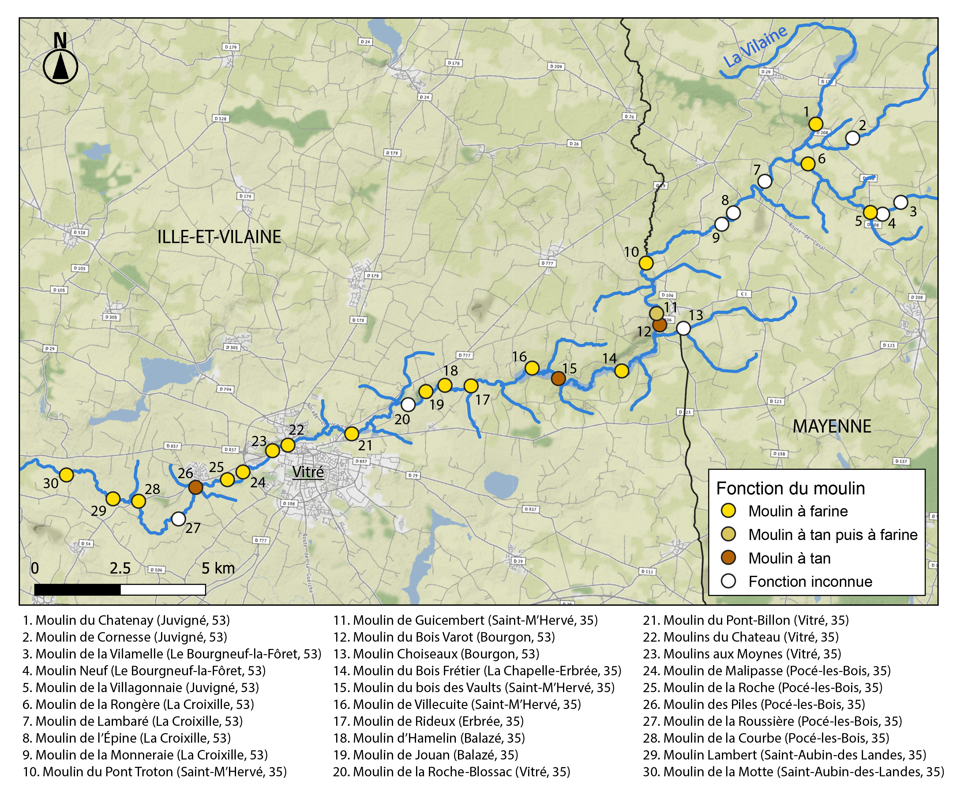 Les moulins du cours d'eau La Vilaine (partie amont),