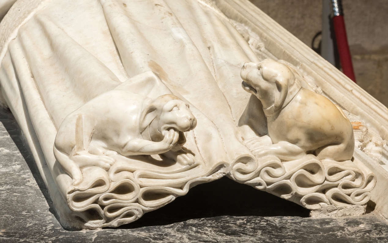 Détail des chiens aux pieds de Marguerite de RohanImmatriculation