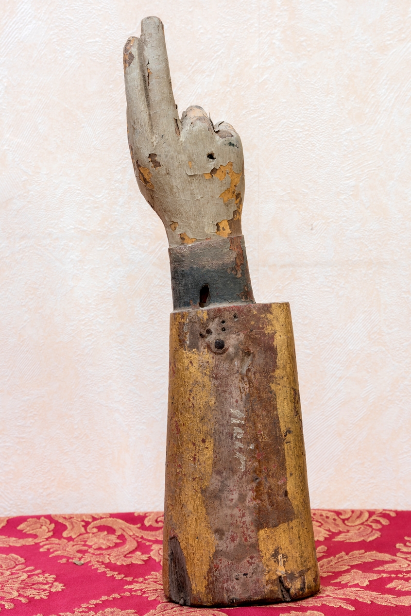 Ensemble de 2 reliquaires morphologiques (bras-reliquaires) de saint Corentin et de saint Clair, Hôpital (Josselin),