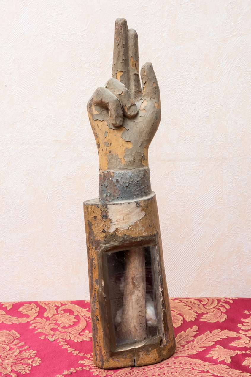 Ensemble de 2 reliquaires morphologiques (bras-reliquaires) de saint Corentin et de saint Clair, Hôpital (Josselin),
