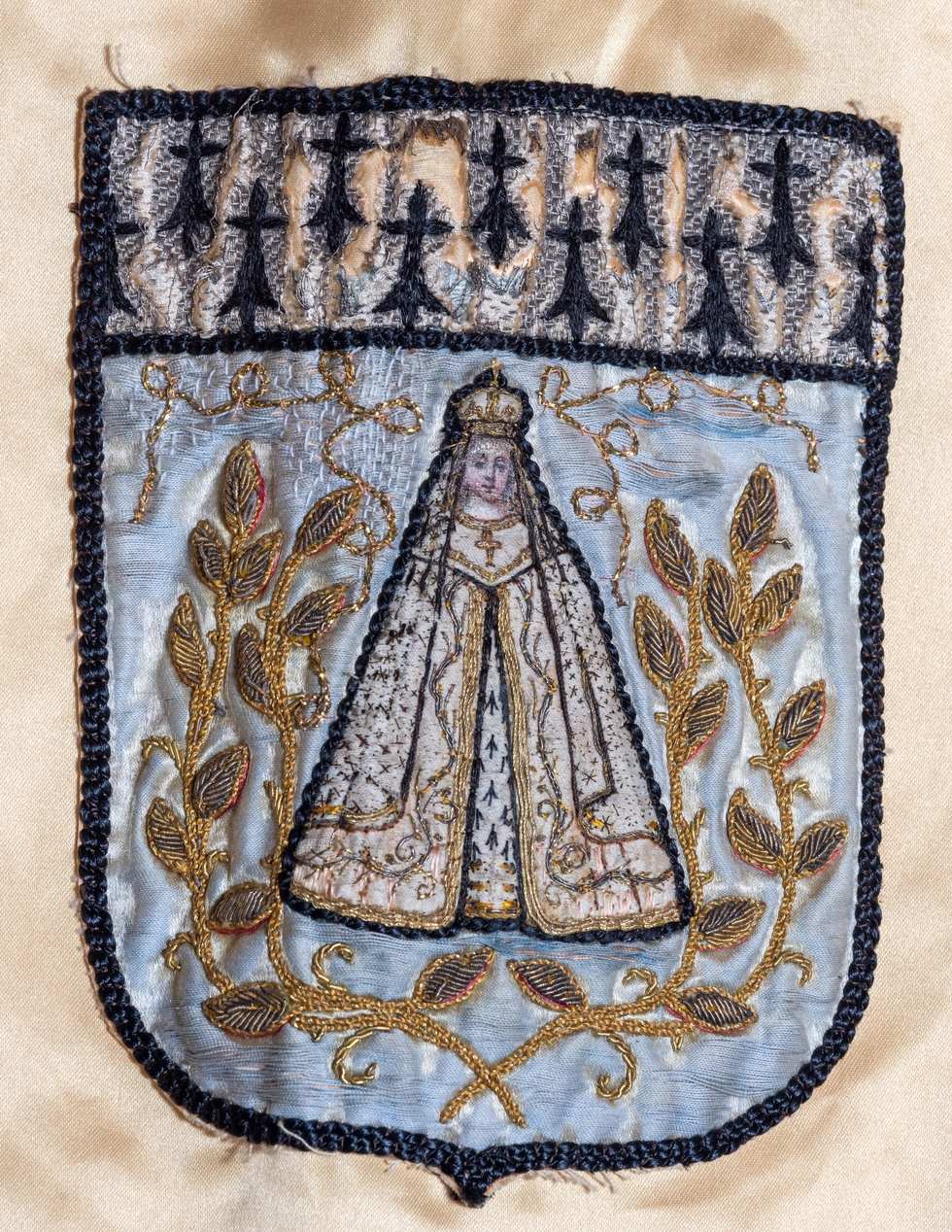 Détail de l'écusson à l'effigie Notre-Dame du Roncier.Immatriculation