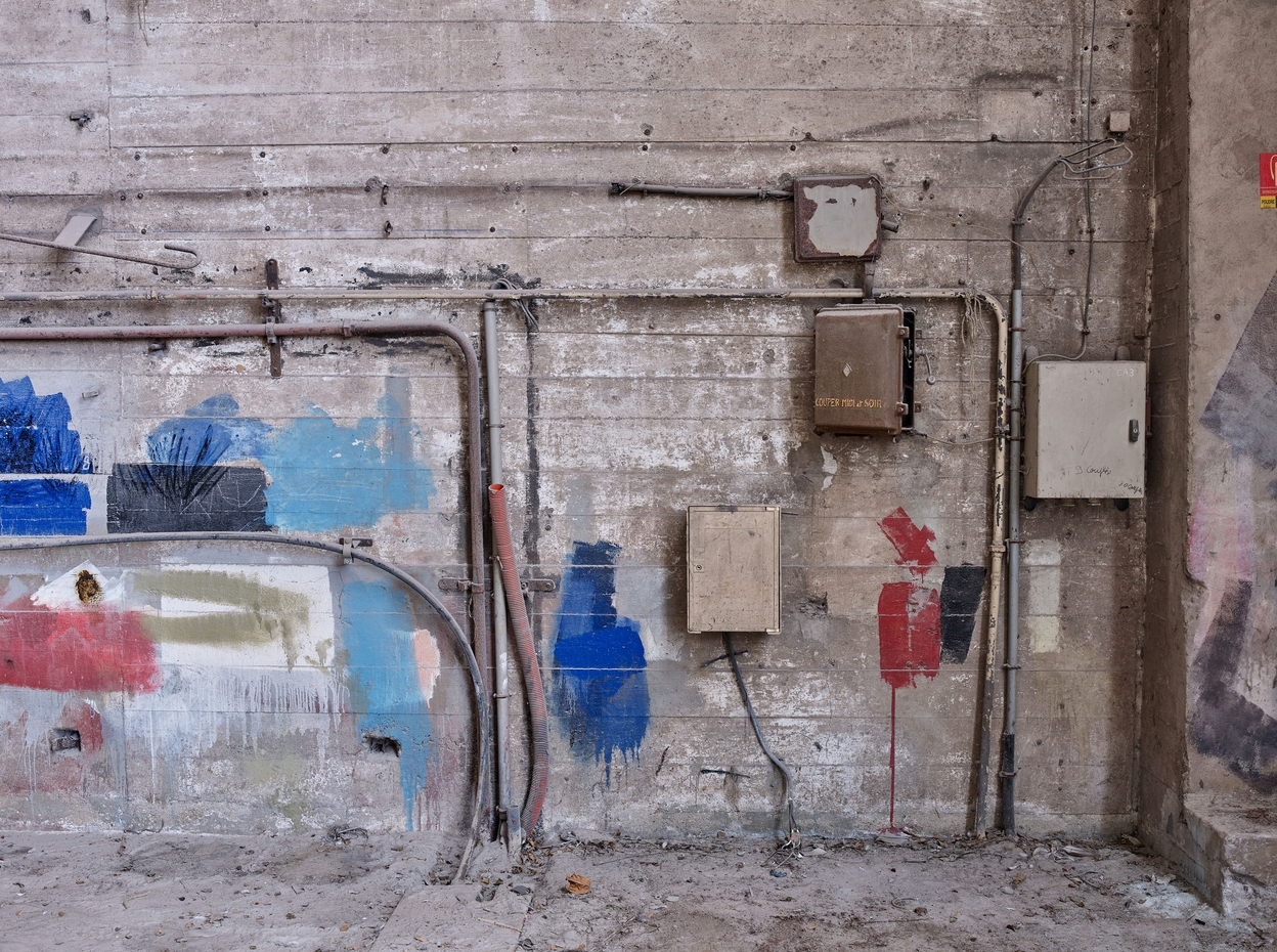 Vue des différents fluides et réseaux sur le mur intérieur ouestImmatriculation