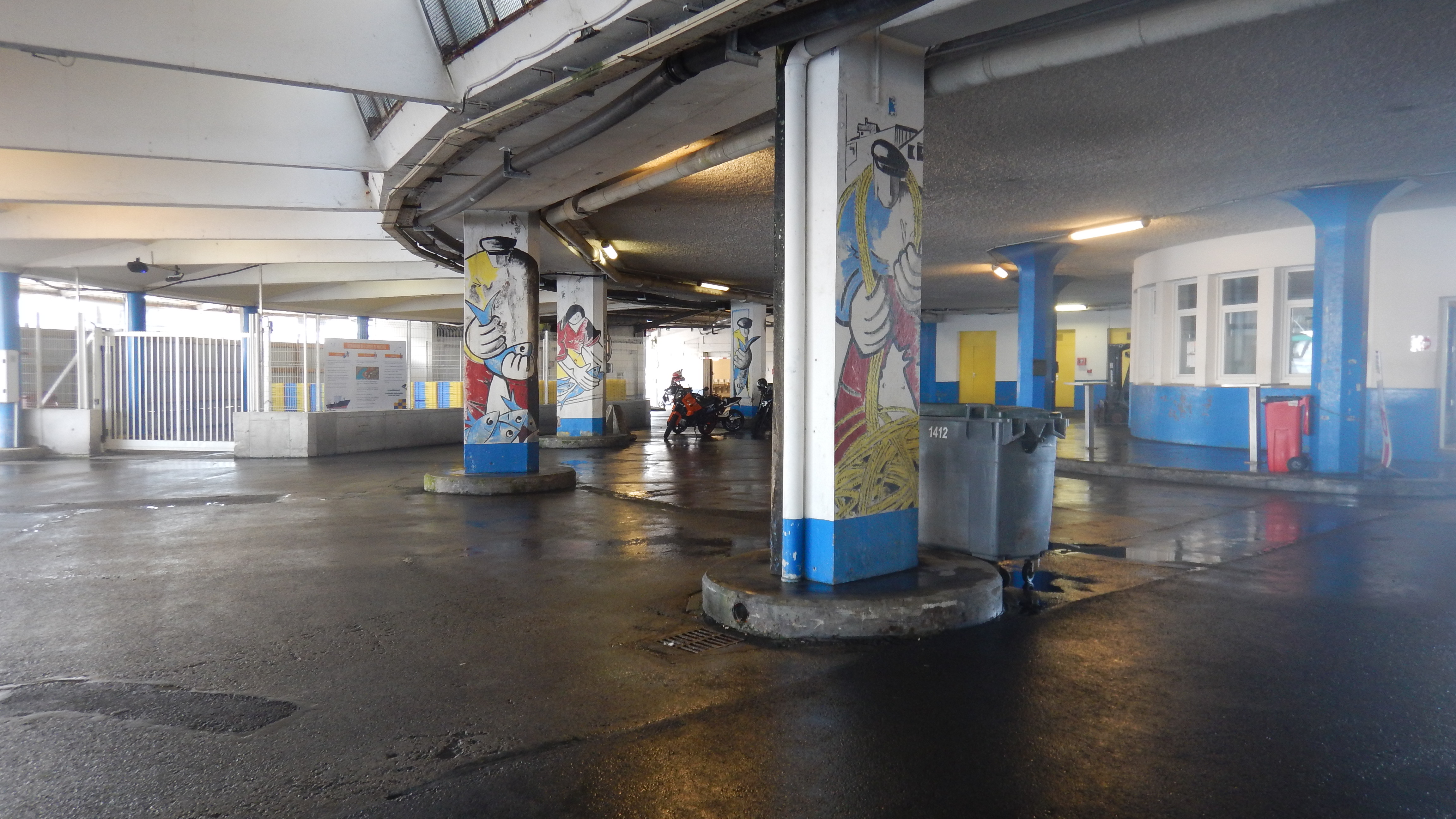 Vue de l'intérieur de la halle en pan coupéImmatriculation