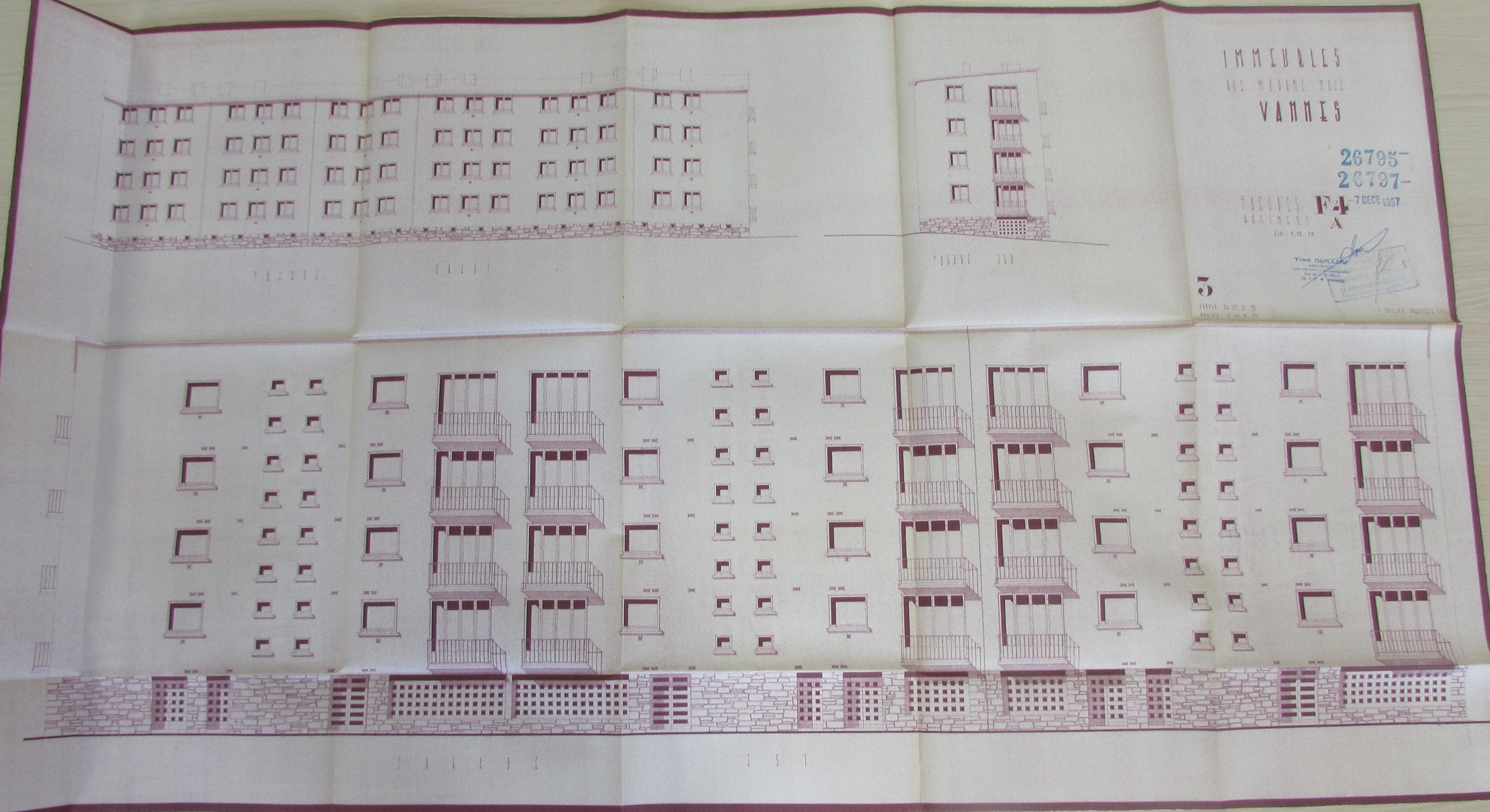 Façades générales par Yves Guillou, 1957. AM Vannes.Immatriculation