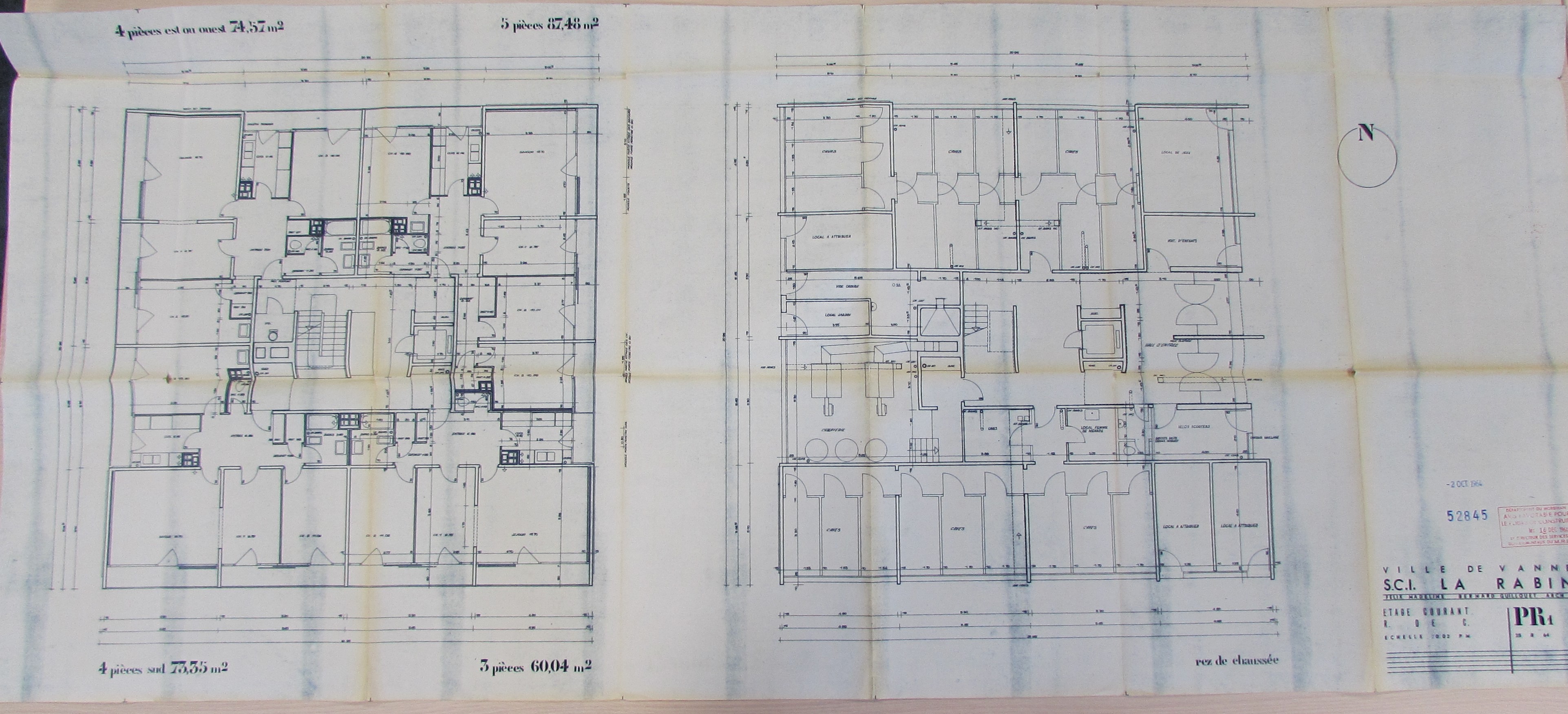 Etage courant par F. Madeline, 1964. AM Vannes 35 W 3049.Immatriculation