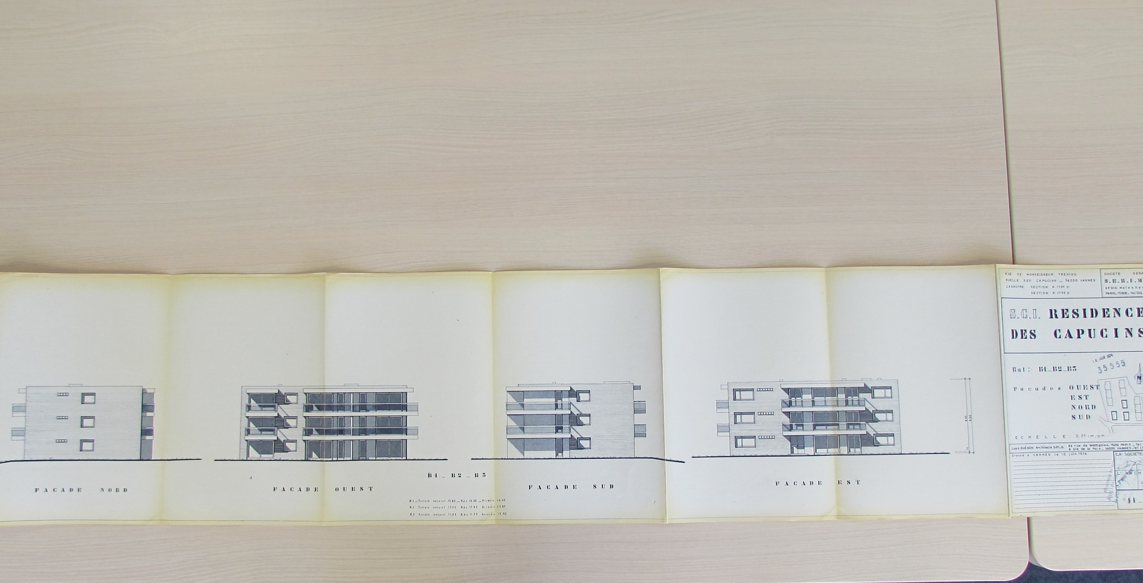 Façades par L. Guénon, 1974. AM Vannes 35 W 5696.Immatriculation