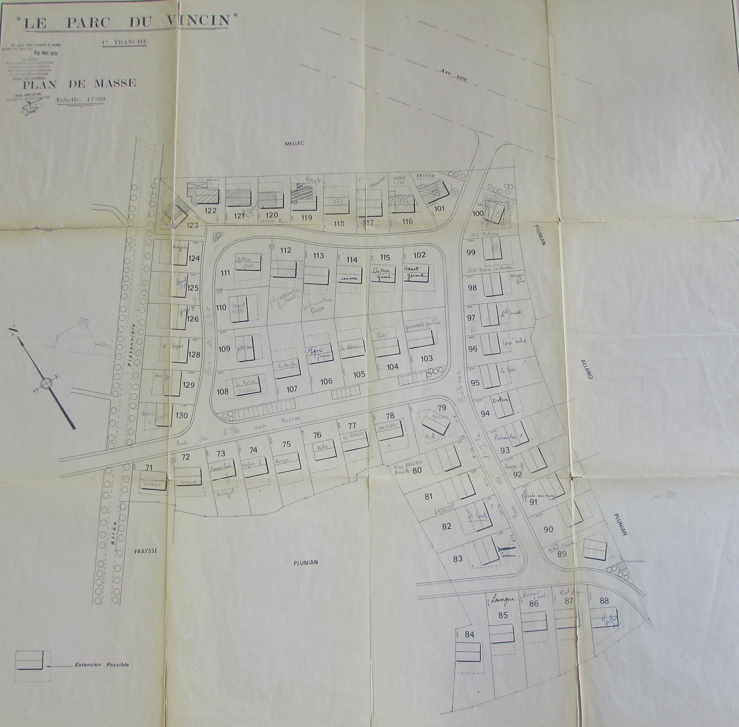 Plan masse du lotissement 4ème tranche, 1972 par M. Morin. AM Vannes 70 W 182.Immatriculation
