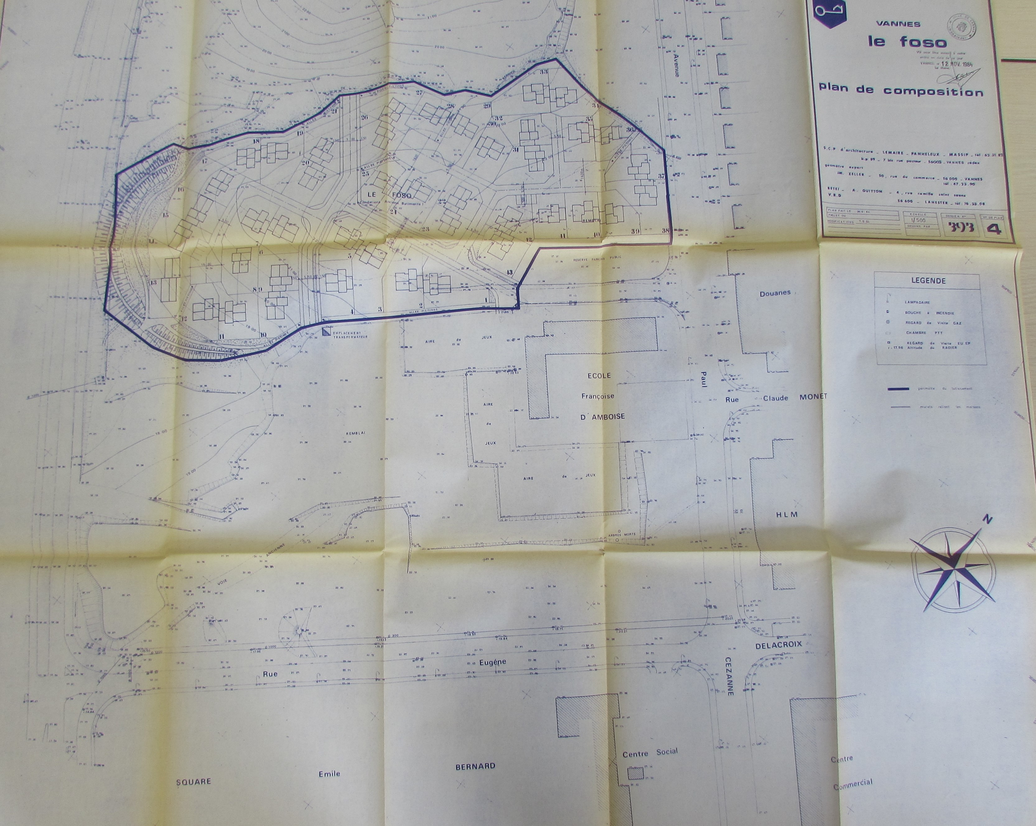 Plan de composition du lotissement Le Foso par SCP d'architecture Lemaire, Panhéleux, Massip, 1984. AM Vannes 70W291.Immatriculation