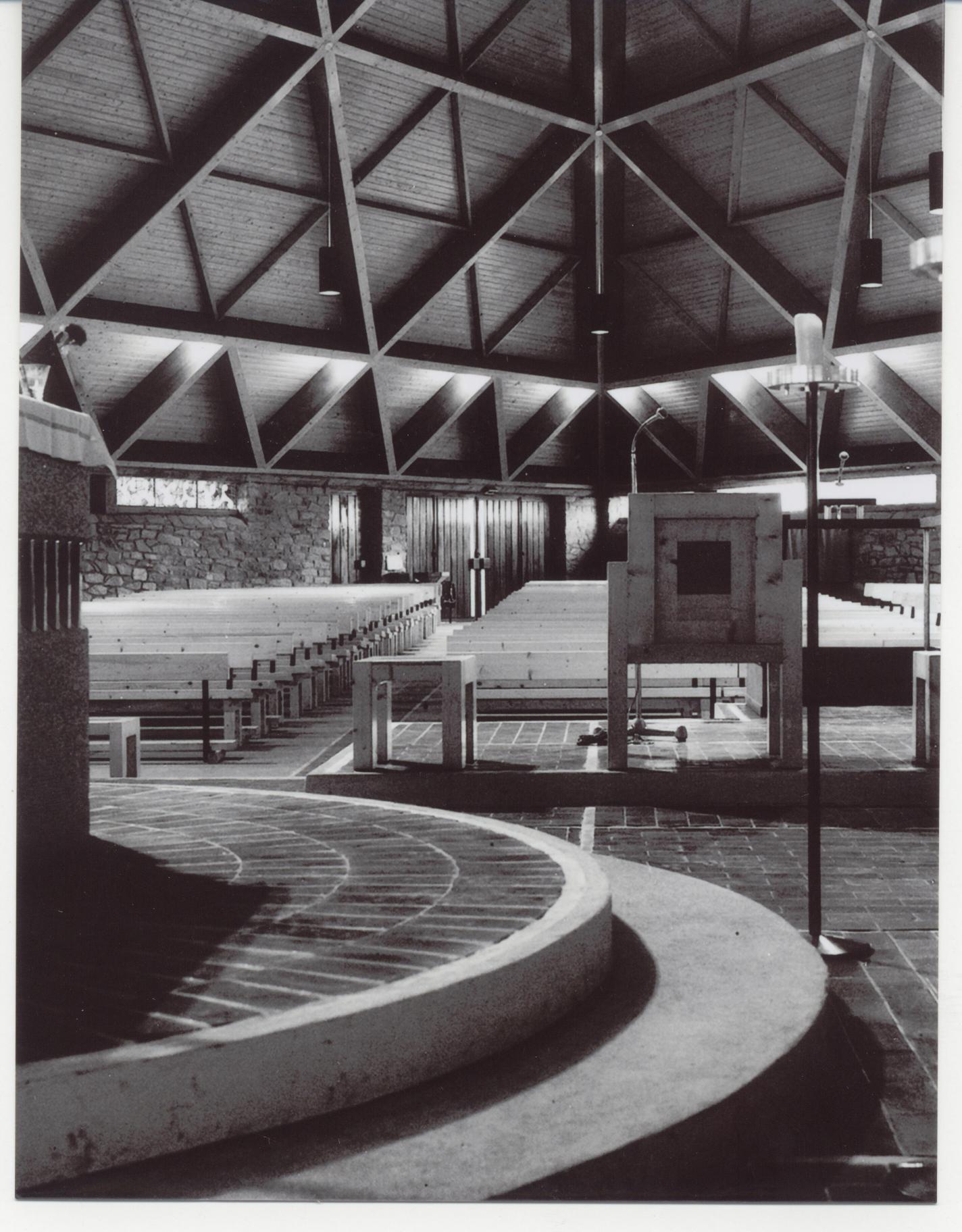 Chapelle Saint-Guen : vue intérieure générale depuis le choeur. Fonds Maisonneuve.Immatriculation