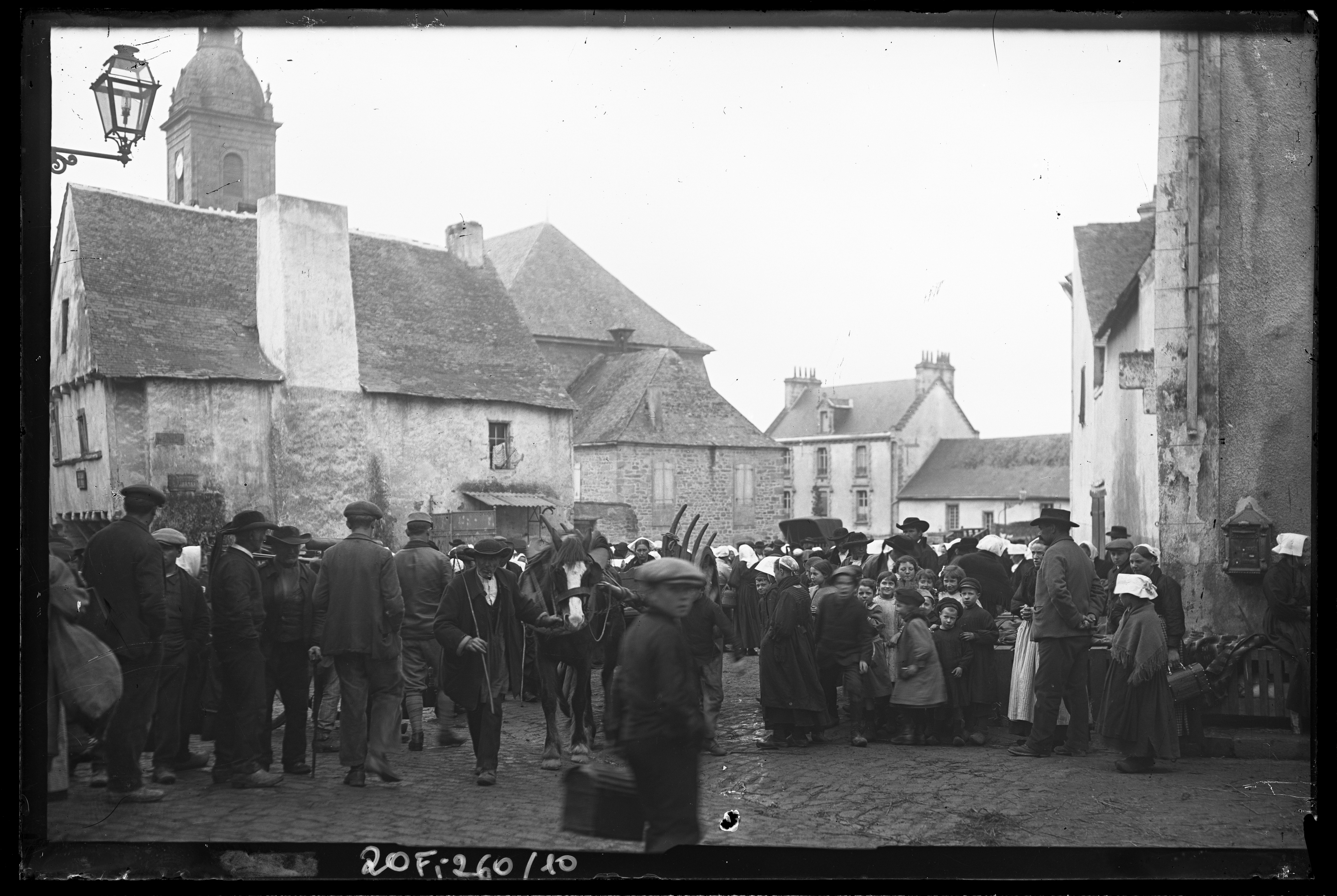 Place Sainte-Catherine, un jour de marché, limite 19e-20e siècle. David (éditeur de cartes postales). AD 56 20 FI 260/10.Immatriculation