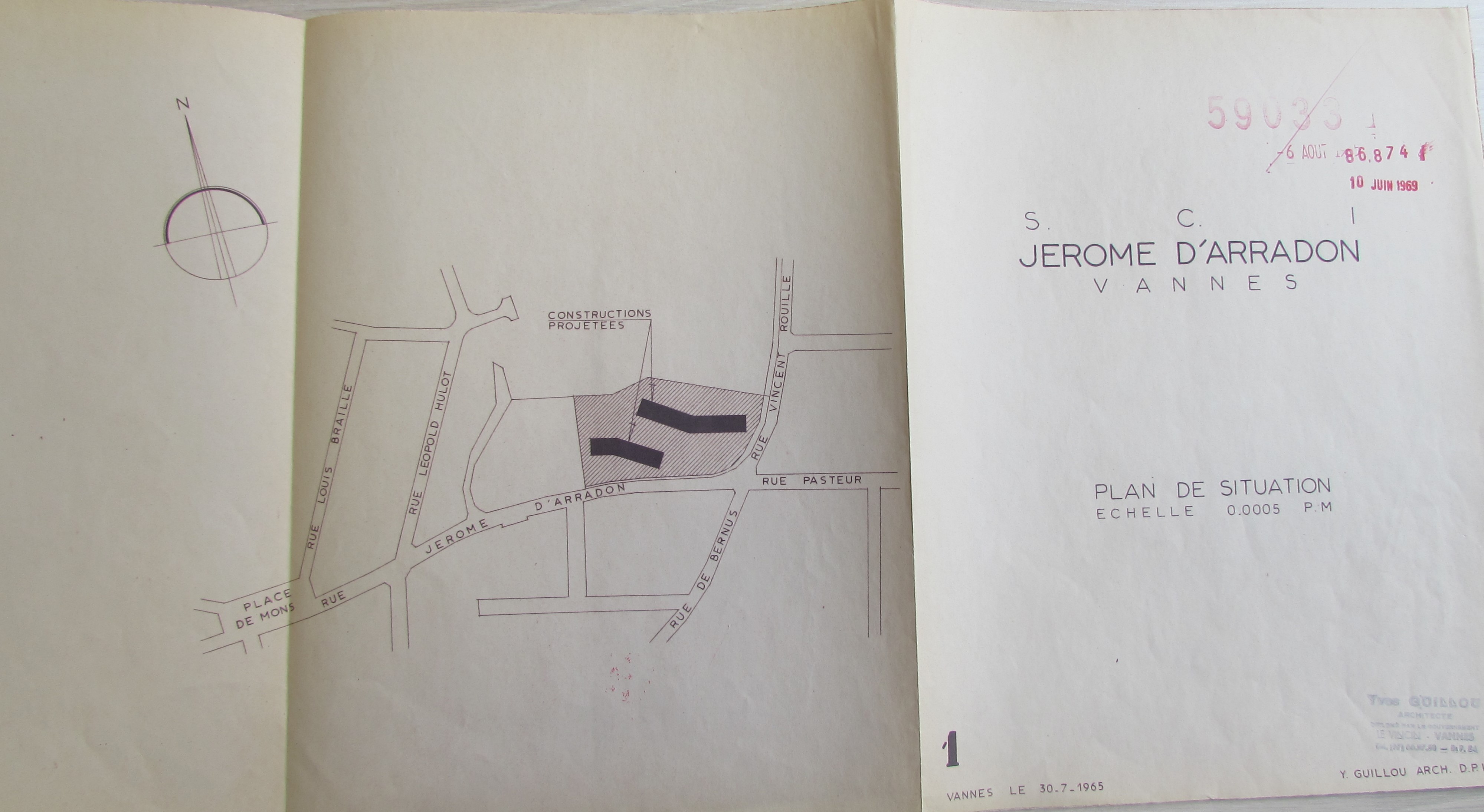 Plan de situation, 1965, par Yves Guillou. AM Vannes 35 W 4201.Immatriculation
