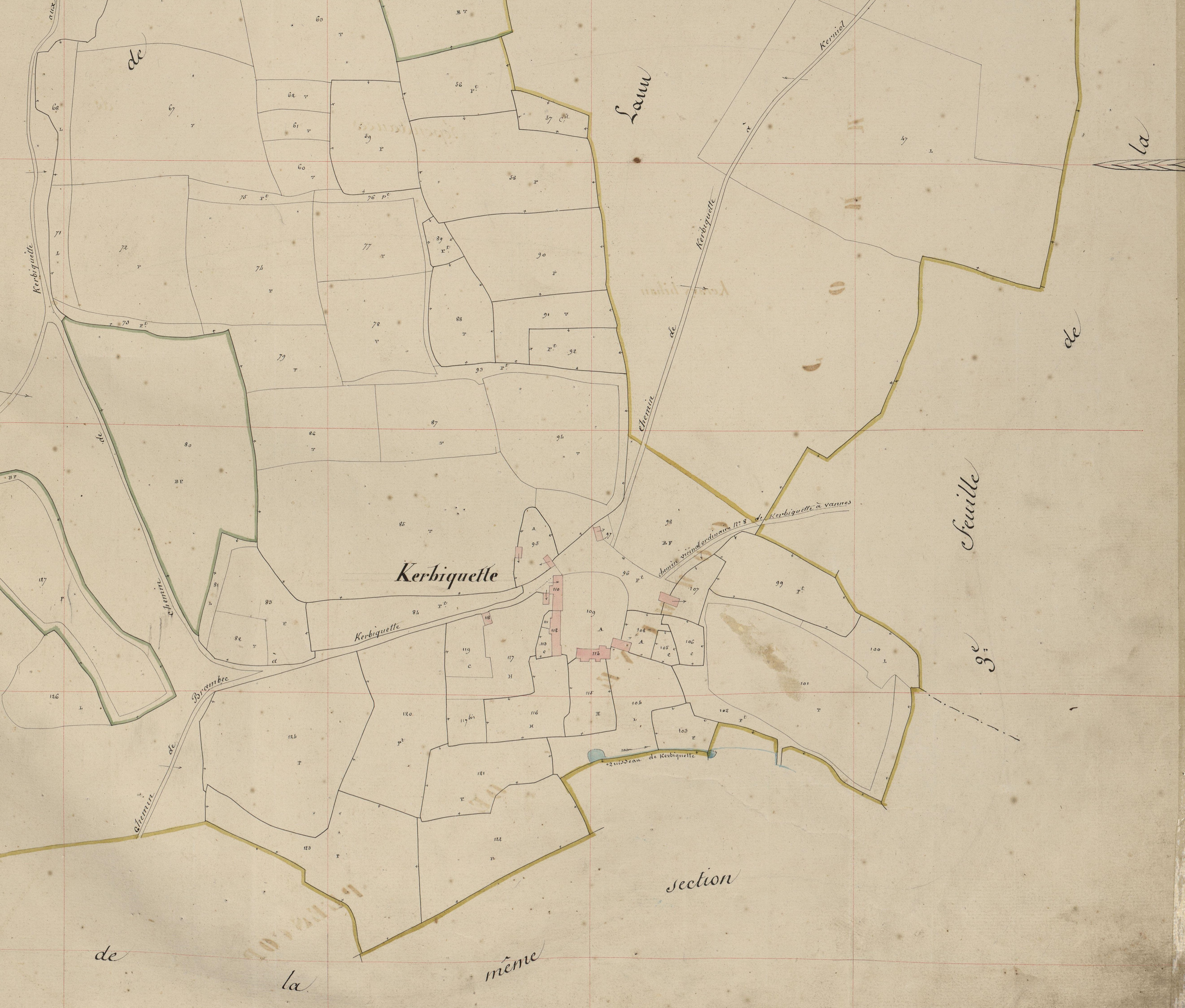 Plan cadastral de 1844, section A1. AD Morbihan 3P593.Immatriculation