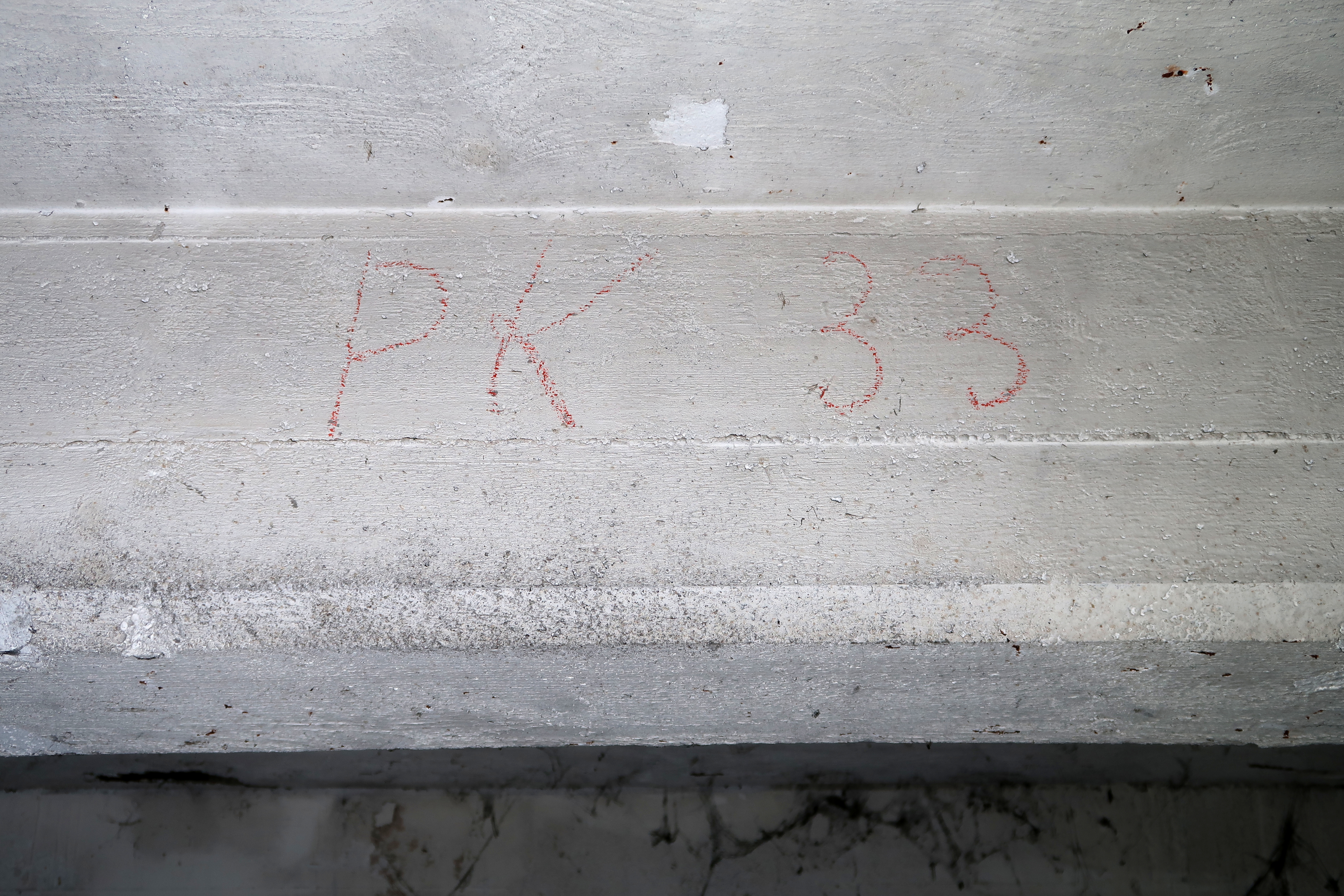 Premier étage : marquage "PK 33" (box 21). "PK" est l'abréviation en allemand de "Propaganda Kompanie", "compagnie de propagande"Immatriculation