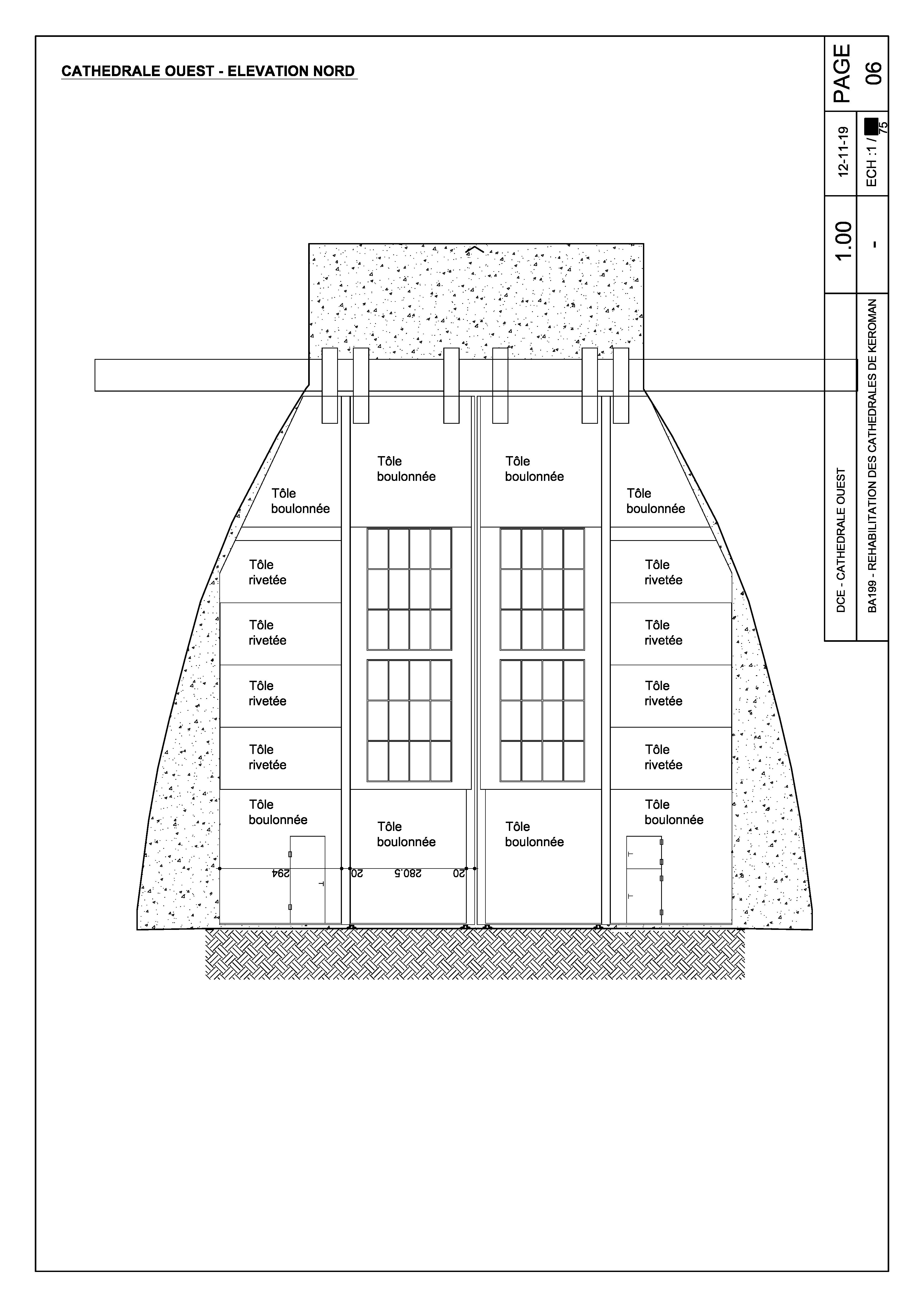 Elévation nord, 2019 (Projet de réhabilitation des cathédrales de l'aire de réparation navale de Lorient-Keroman)Immatriculation