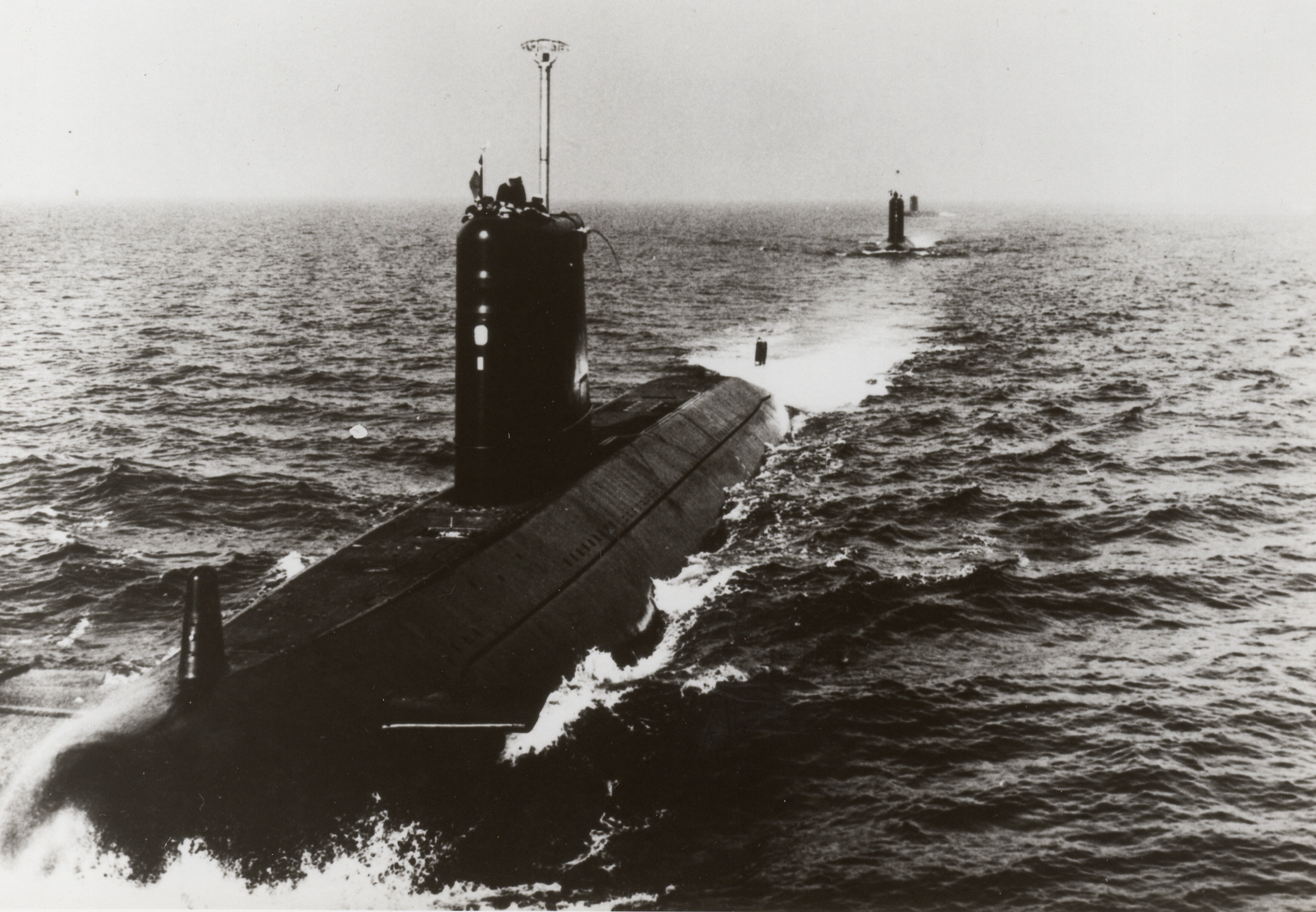 Trois des quatre sous-marins de la classe Agosta en formation de surface dans l’Atlantique : Agosta, Bévéziers et Ouessant, photographie non datée (il manque le sous-marin La Praya)Immatriculation