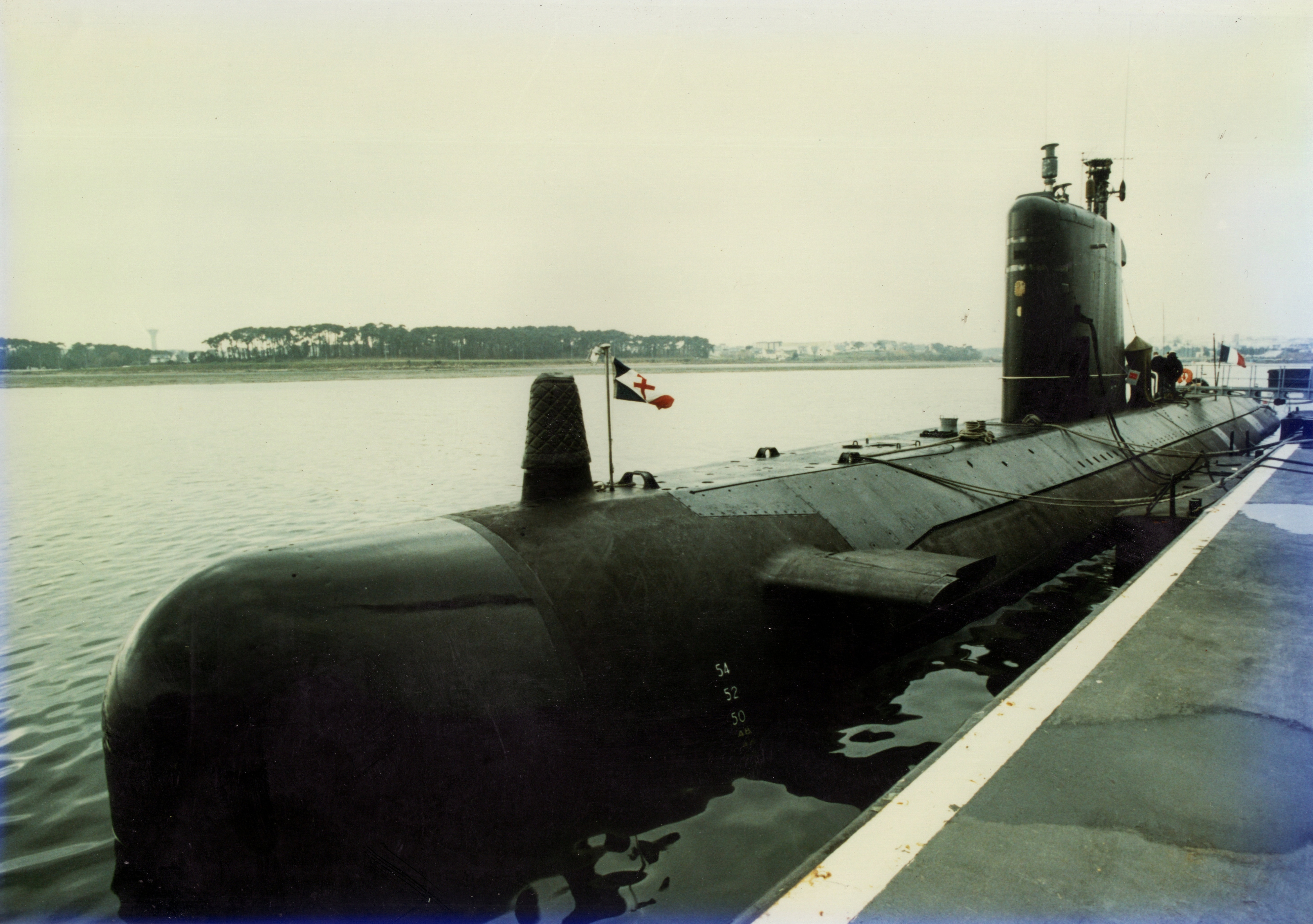 Le sous-marin Agosta au ponton n° 9 de la base de sous-marin de Keroman, photographie non datéeImmatriculation