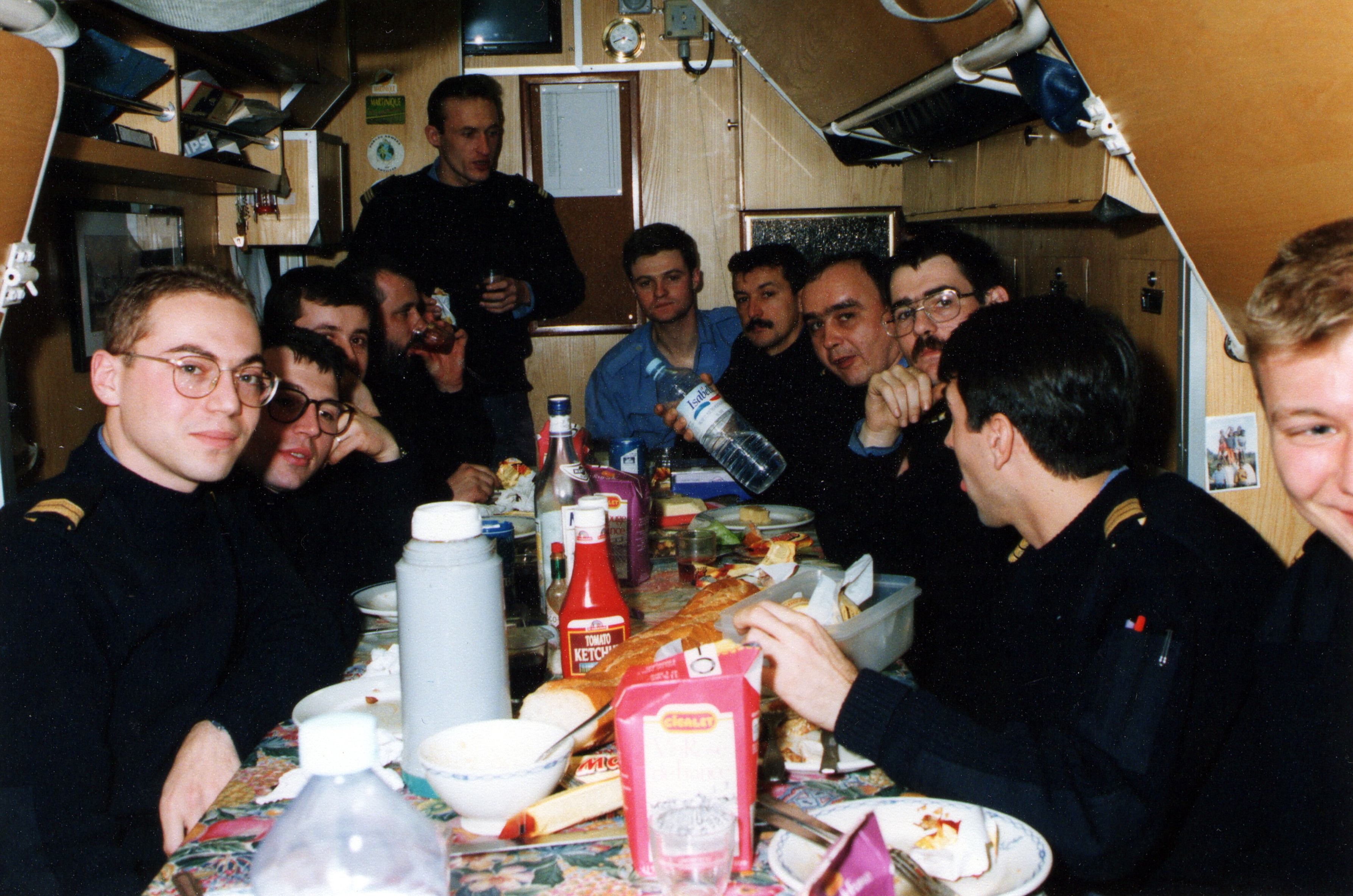 Repas dans le poste des officiers mariniers du sous-marin Agosta, photographie non datéeImmatriculation