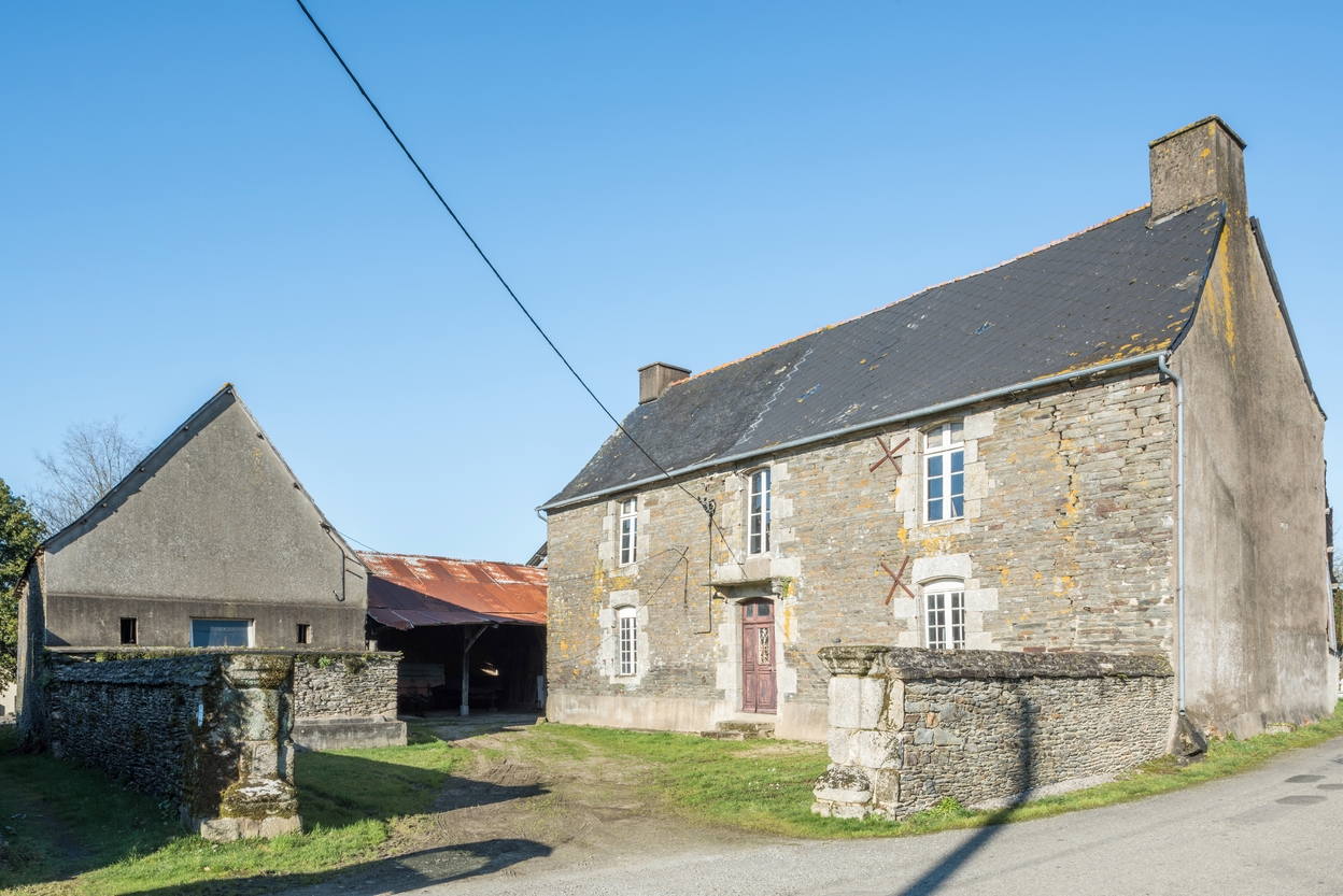 Vue de la maison et de la dépendance entourées d'un mur de clôtureImmatriculation