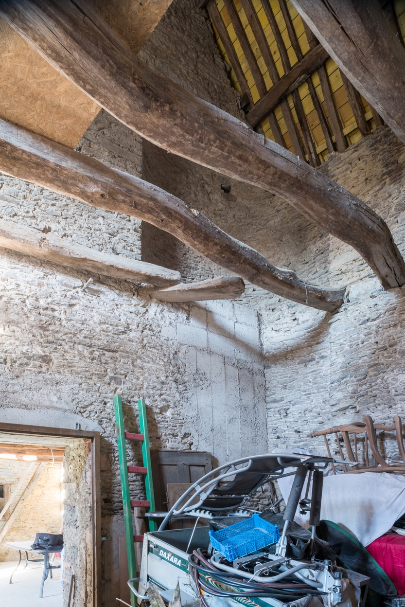 Maison abritant sous le même toit le logis et la pilerie. Mur de refend séparant le logis de la pilerie. Emplacement de l'escalier en vis qui desservait le comble de la pilerie.Immatriculation