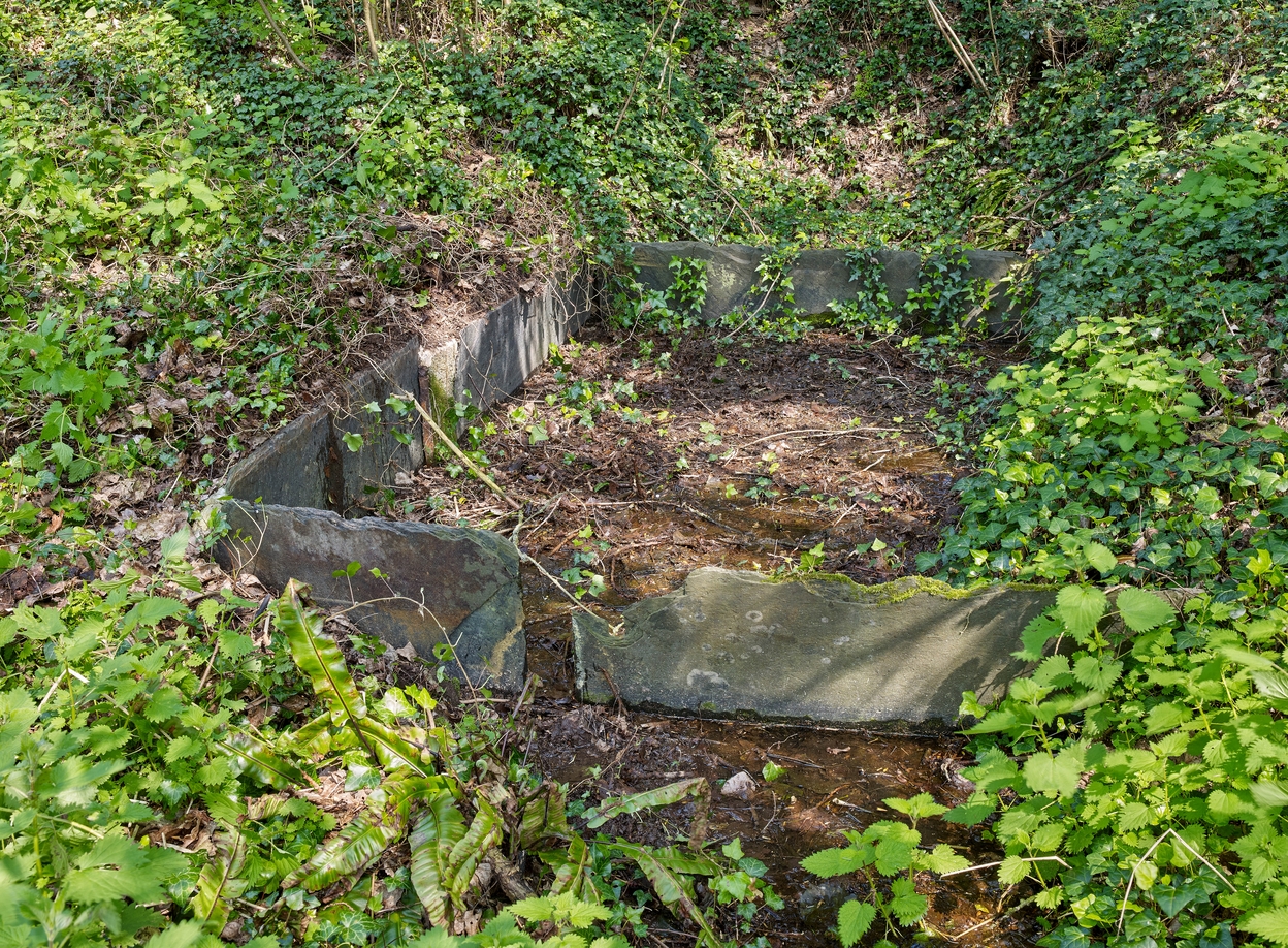 Lavoir. Détail d'un bassin.Immatriculation