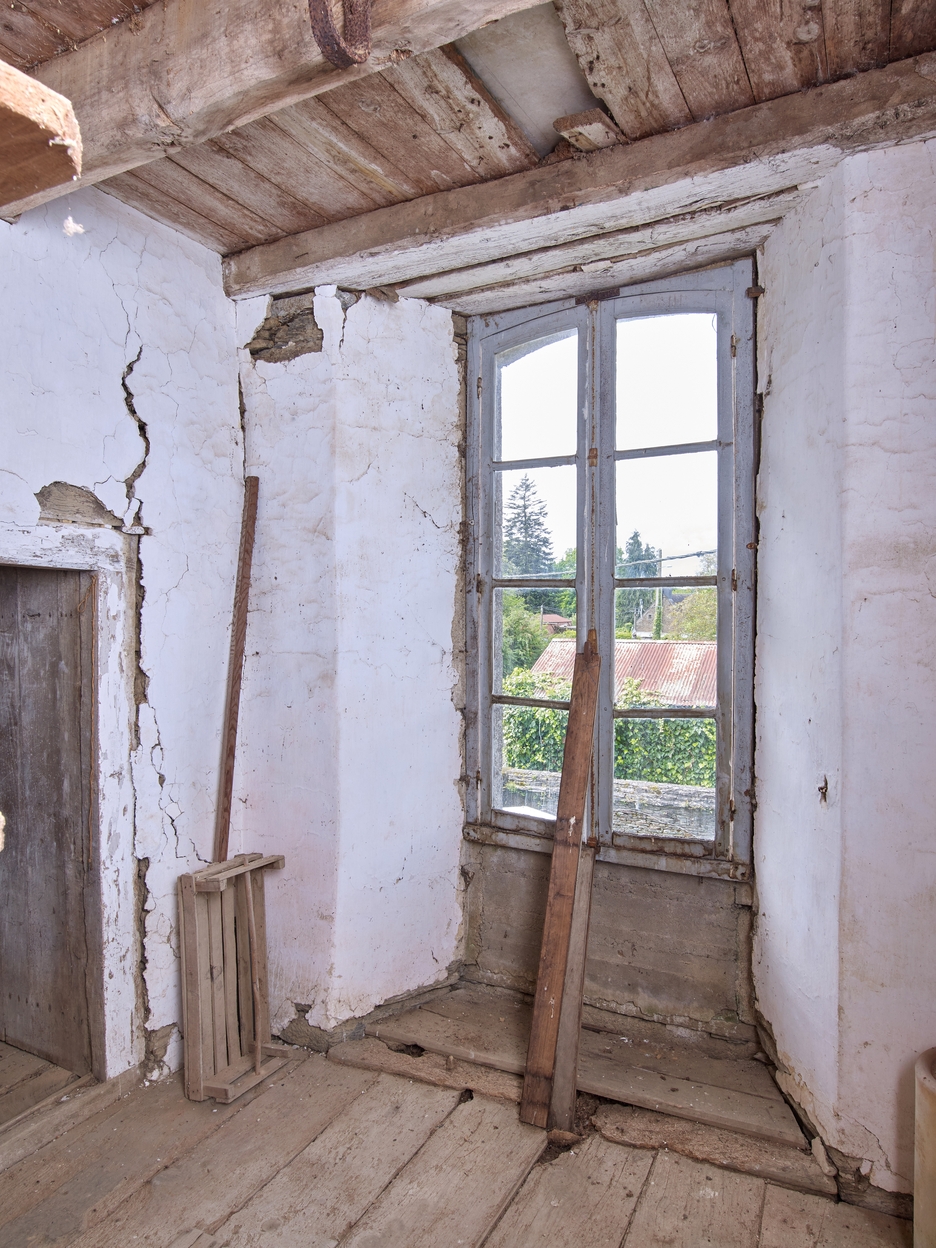 Palier de l'escalier. Porte-fenêtre ouvrant à l'origine sur un balcon.Immatriculation