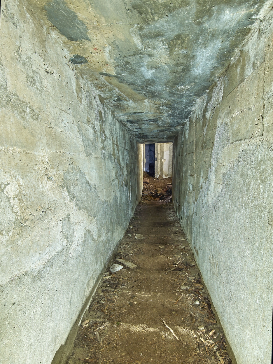 Vue du tunnel. Long 12,5 mètres pour un mètre de largeur et 2,25 mètres de hauteur, il est doté de marches rampantes pour faciliter la descente...Immatriculation