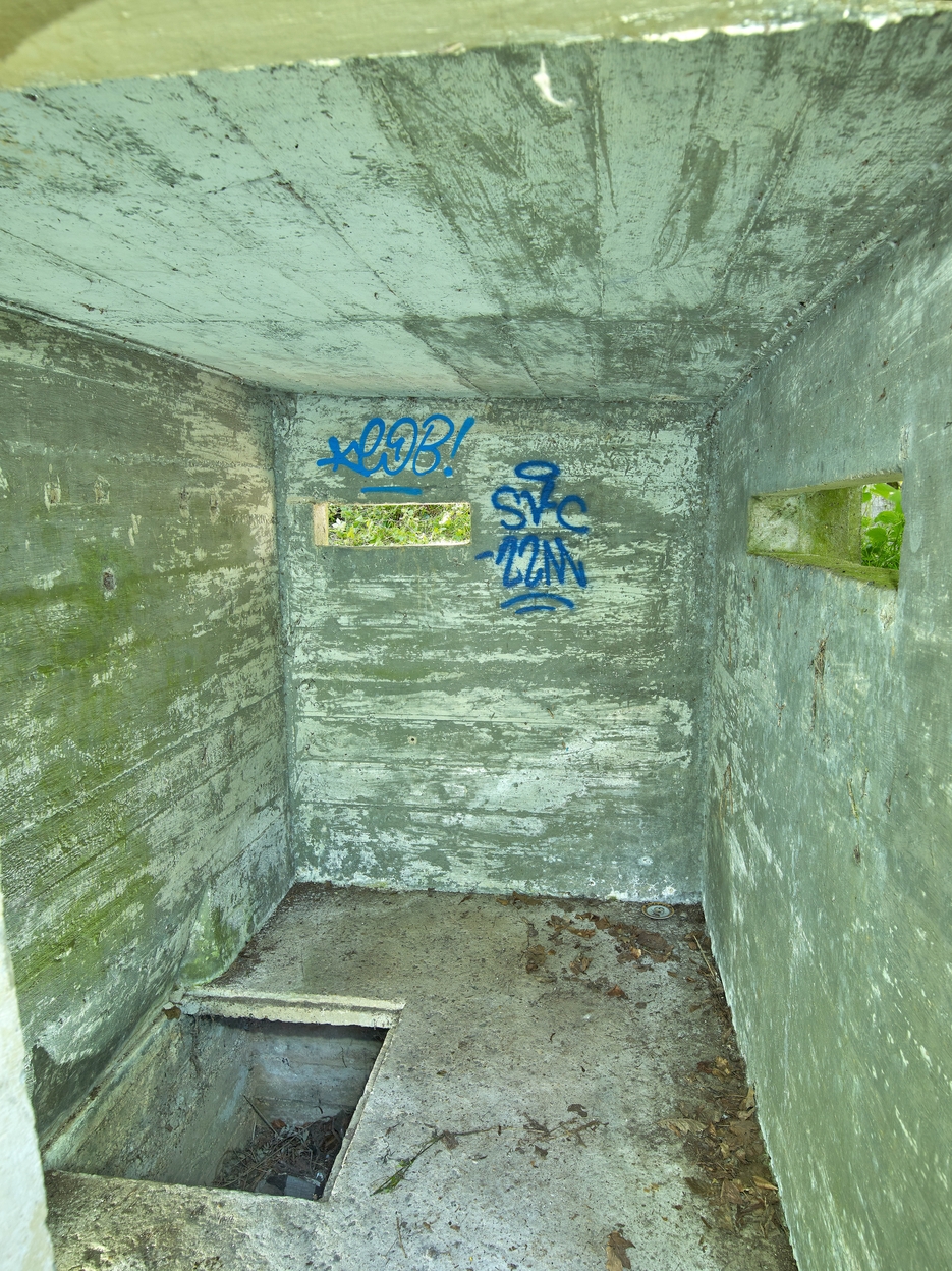 Vue intérieure des embrasures orientées vers le Nord-nord-ouest (vers le bunker - casemate de type 612) et vers l'Est-nord-estImmatriculation