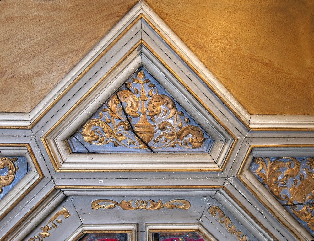 Premier niveau, détail d'un caisson avec décor Renaissance sculpté en bas-reliefImmatriculation