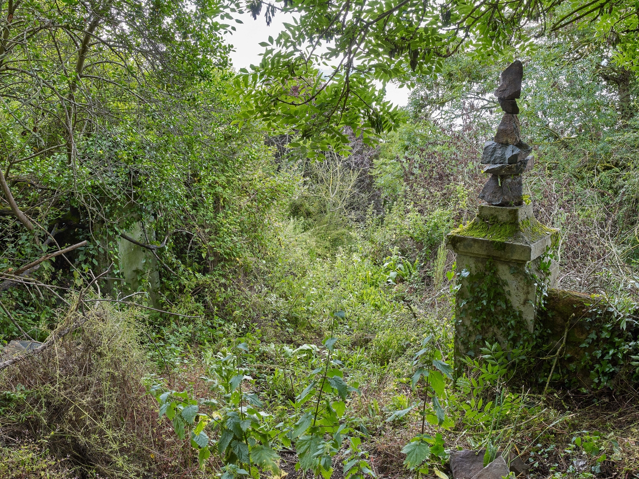 Vue de l'entrée Sud aménagée dans le mur de clôture : pilier Ouest en ciment arméImmatriculation